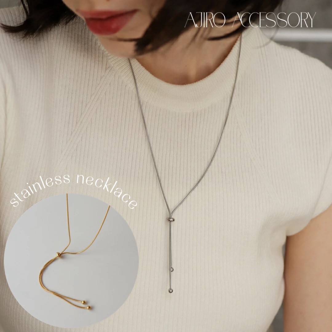 ネックレス アレルギー対応 ラリエット つけっぱなし スネークチェーン ボール ゴールド シルバー おしゃれ レディース 調節可能 人気 ajiro accessory N004