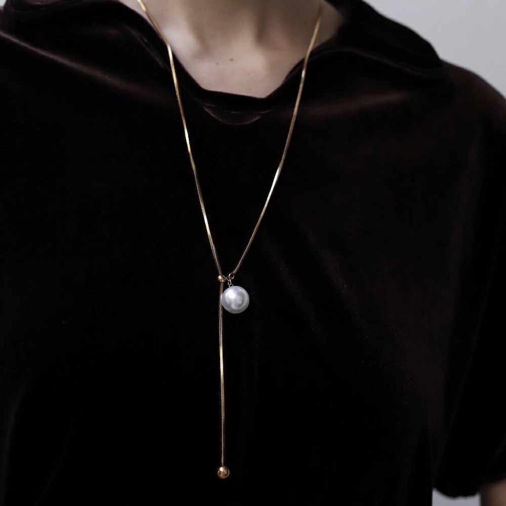 ネックレス ajiro accessory サージカルステンレス スネークチェーン ラリエット パール おしゃれ レディース 金属アレルギー対応 N050