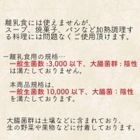 加熱処理は行っておりますが生食をおすすめする菌数ではありませんので、スープ、お菓子など火を通して頂く料理に是非。