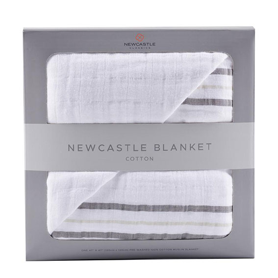 【ニューキャッスルクラシックス】ブランケット コットンモスリン1枚入り 【NC-BC333】 Teddy Bear and grey stripe 【日本正規品】Newcastle Classics