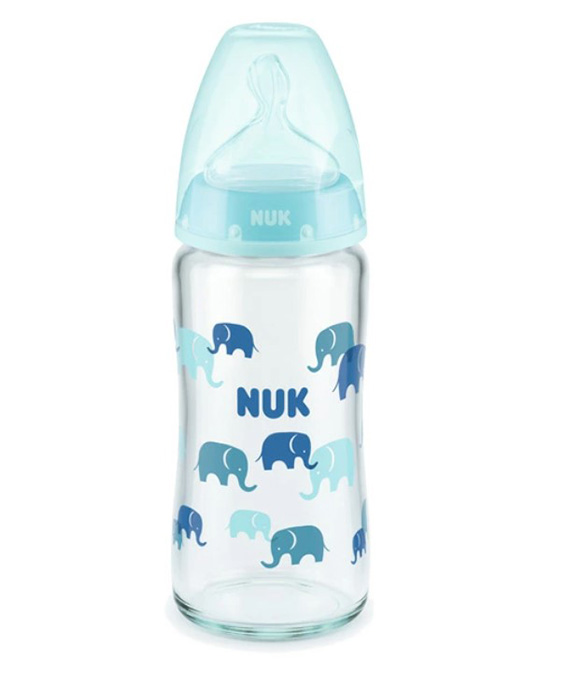 プレミアムチョイスほ乳びん ヌーク 温度センサー付(ガラス製)240ml(0-6カ月)ブルーエレファント【FDNK10745143B】出産準備