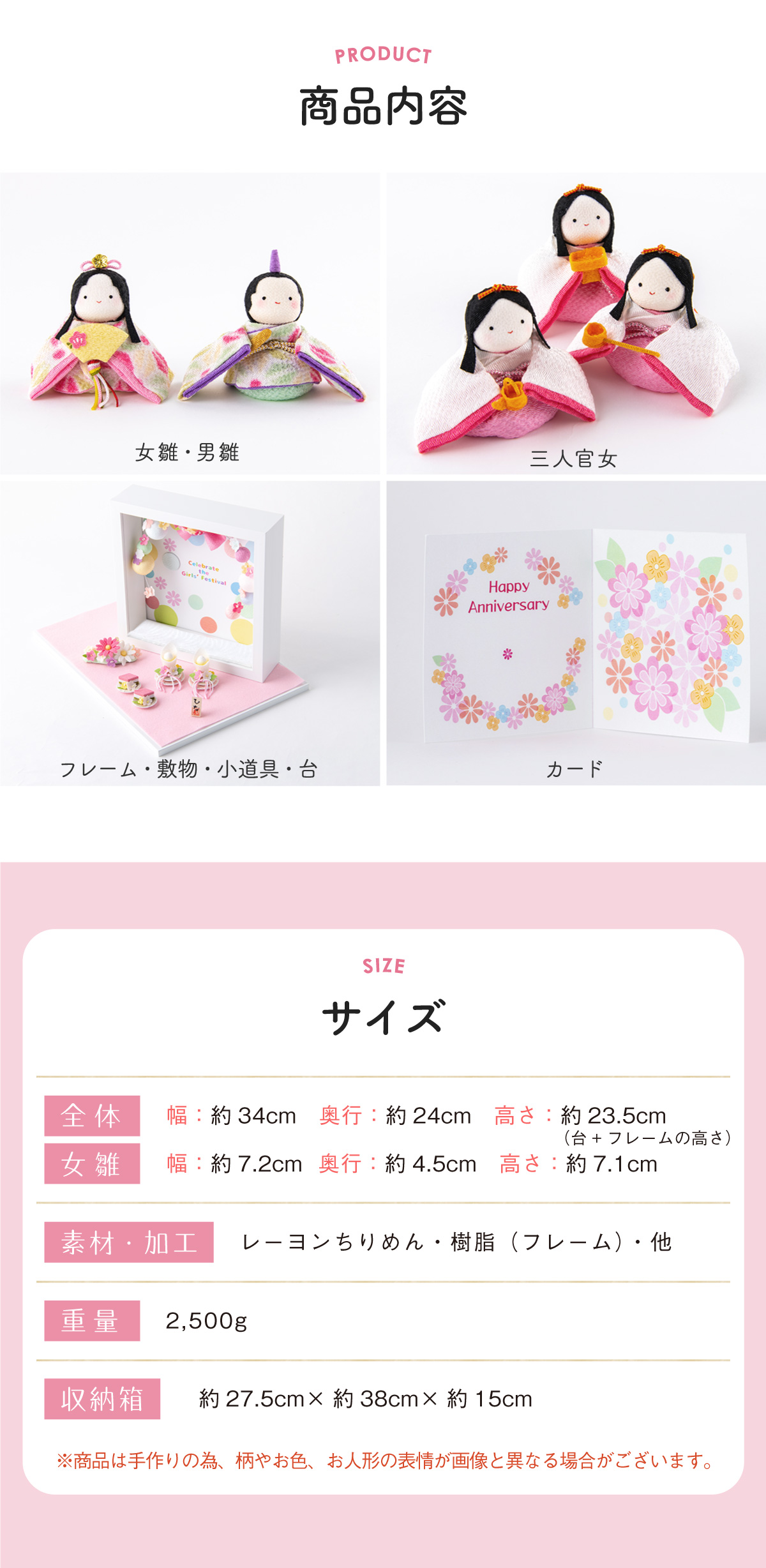 ※商品は手作りのため、お着物の柄やお色、お人形の表情が画像と異なる場合がございます。