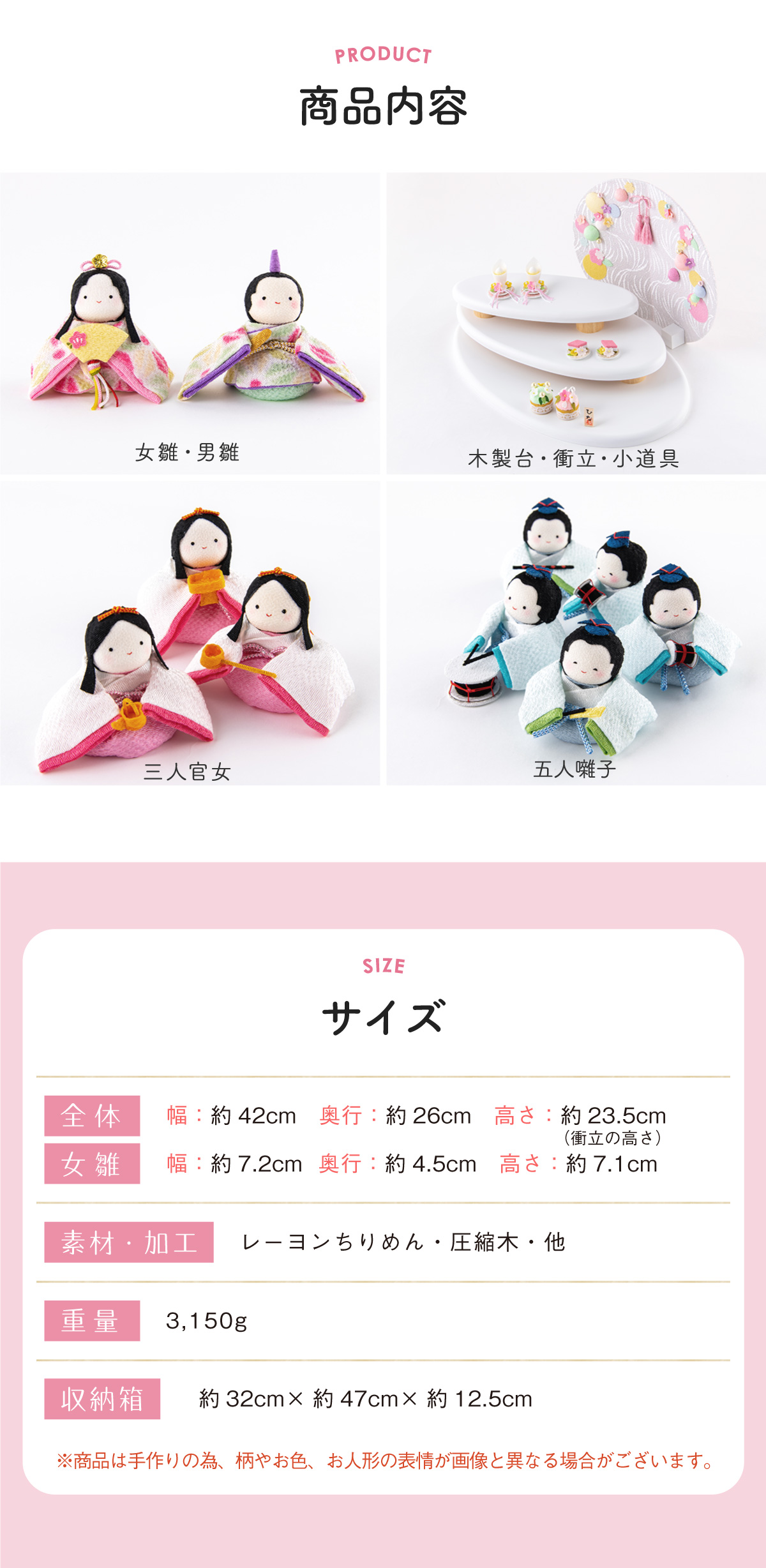 ※商品は手作りのため、お着物の柄やお色、お人形の表情が画像と異なる場合がございます。