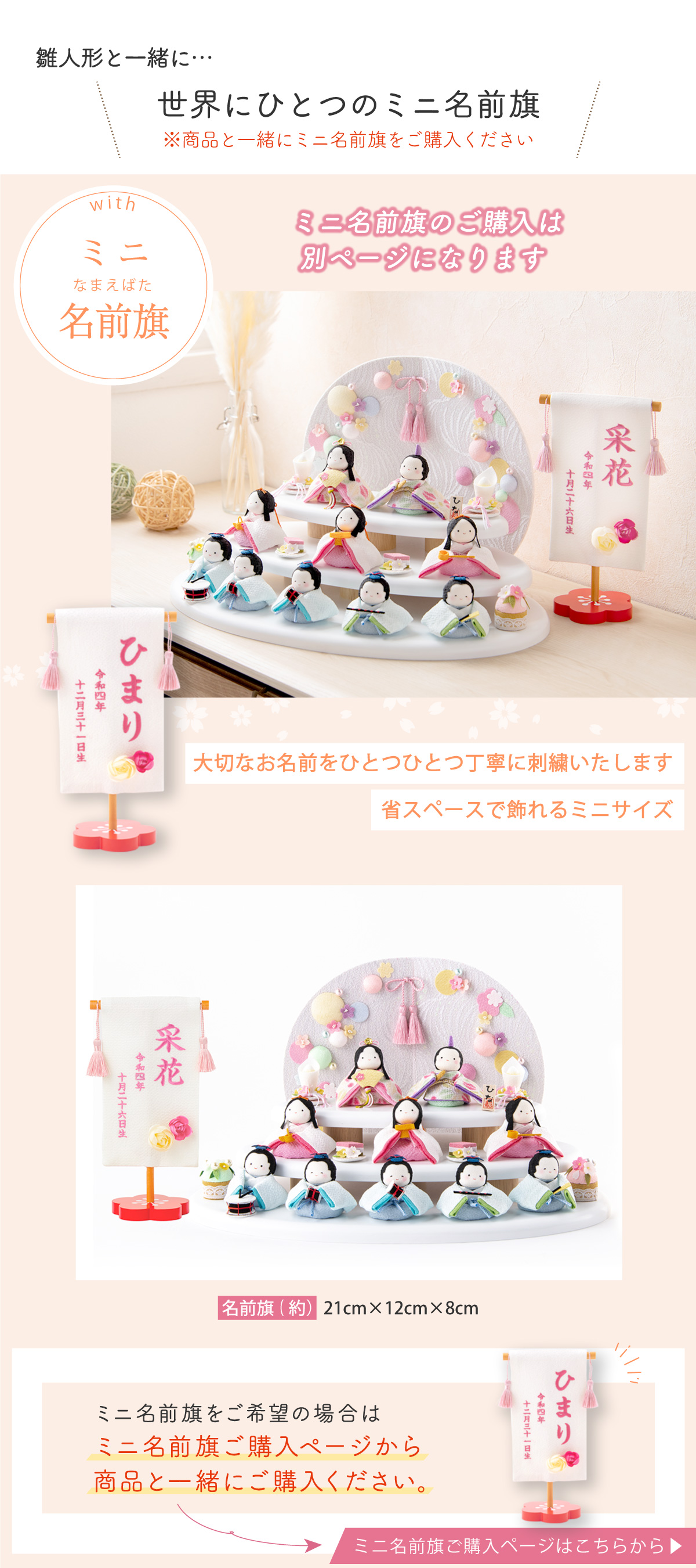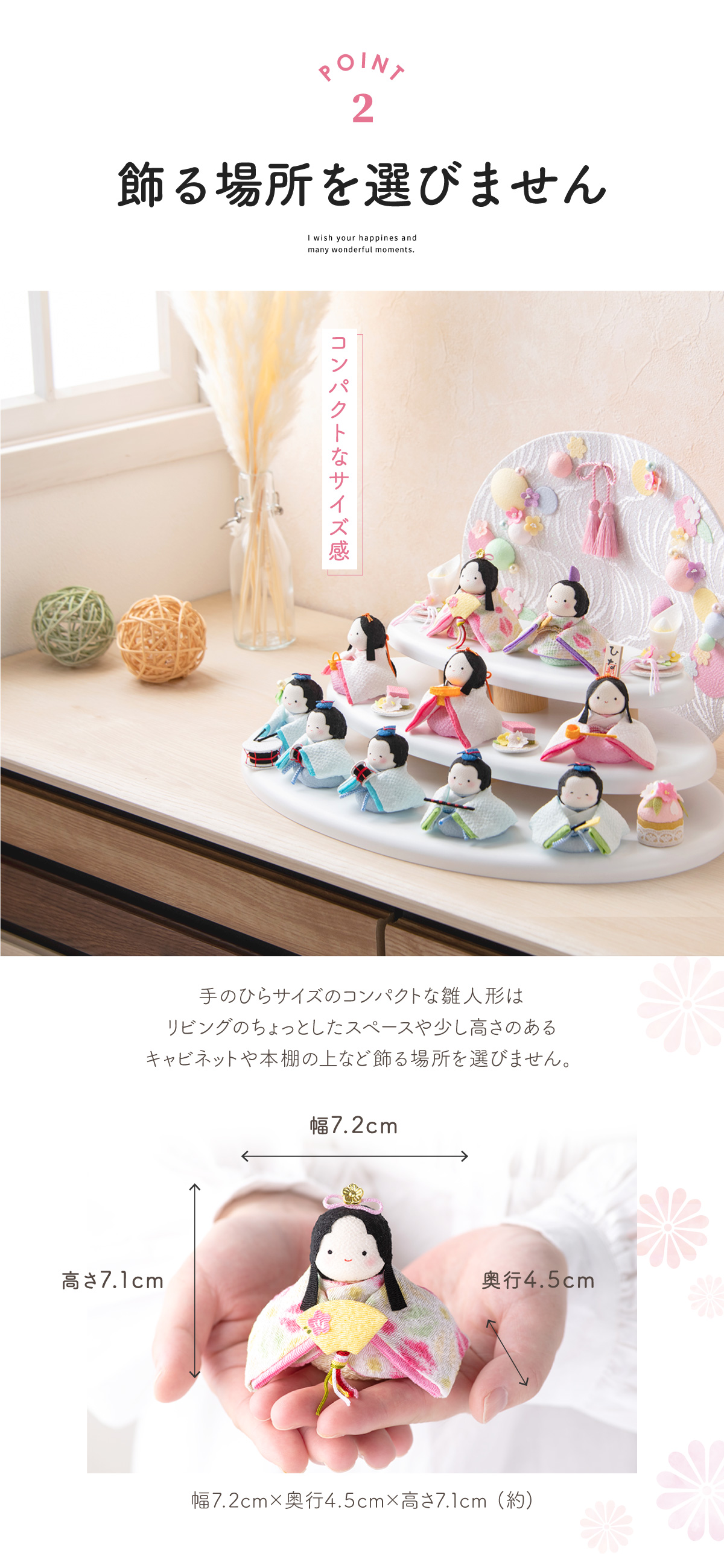 古の習わしと現代の雛祭りを融合し、お子さまのお部屋にお飾りいただく、季節を演出するインテリア、お店などのディスプレイや恋人への沢山の思いを込めたプレゼントなど、多くのシーンで大活躍します。