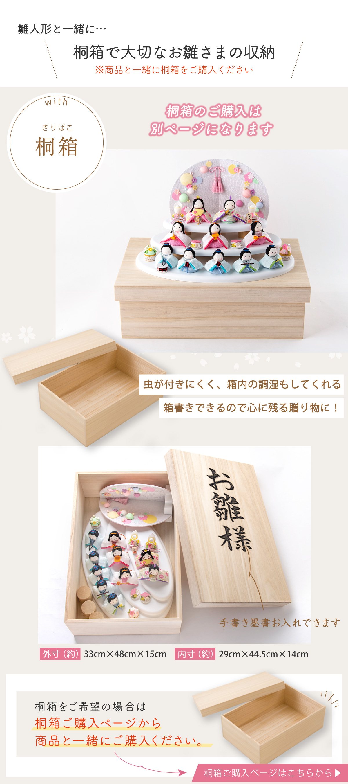 ※お人形に付属の保管箱は、厚手の紙製の箱となります。木製ではございません。ご了承くださいませ。