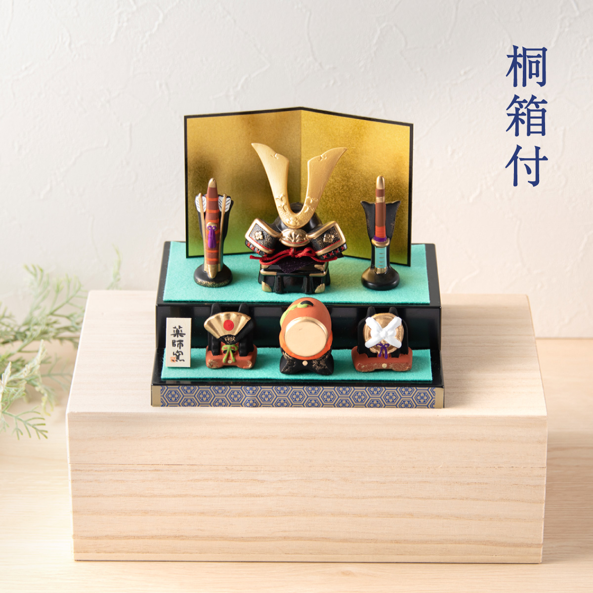 ●五月人形 コンパクト おしゃれ 兜 兜飾り 名前 札 こどもの日 子供の日 2025年 ケース飾り 桐箱 節句飾り 節句人形 陶器 陶磁器 錦彩段飾り出世兜 瀬戸焼 薬師窯●