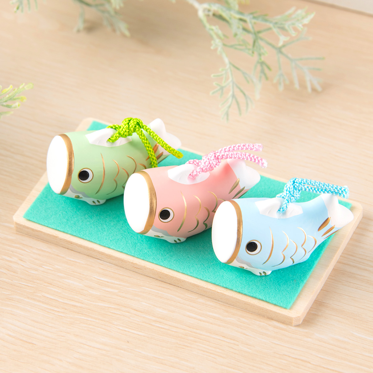 ●五月人形 コンパクト おしゃれ 兜 兜飾り 2023年 新作 こどもの日 子供の日 節句飾り 節句人形 兜 名入れ立札 陶器 陶磁器 錦彩鯉のぼりセット(土鈴・三色) ●