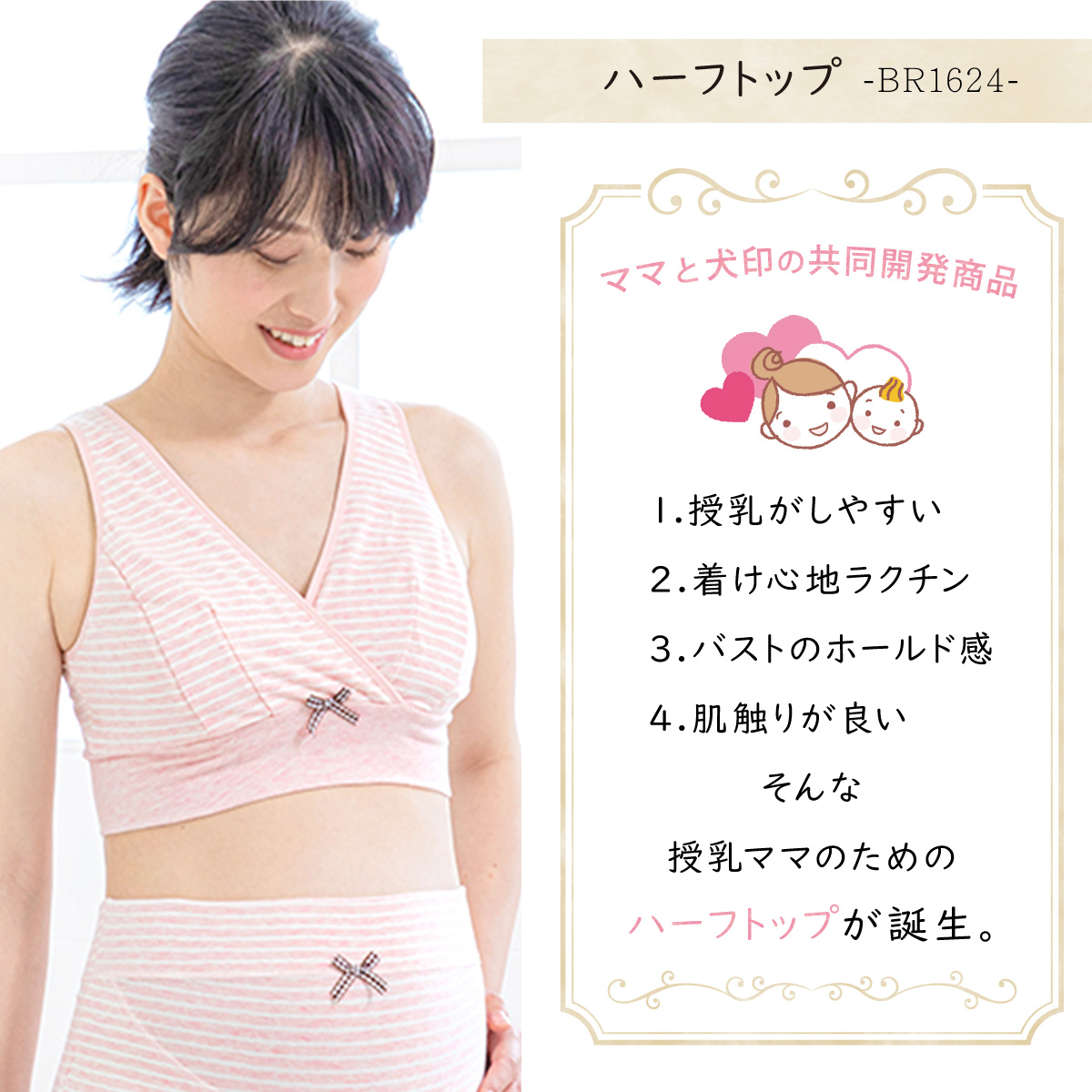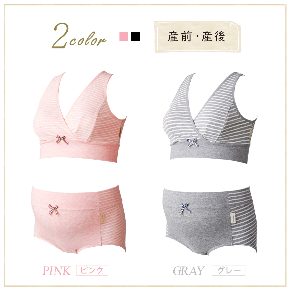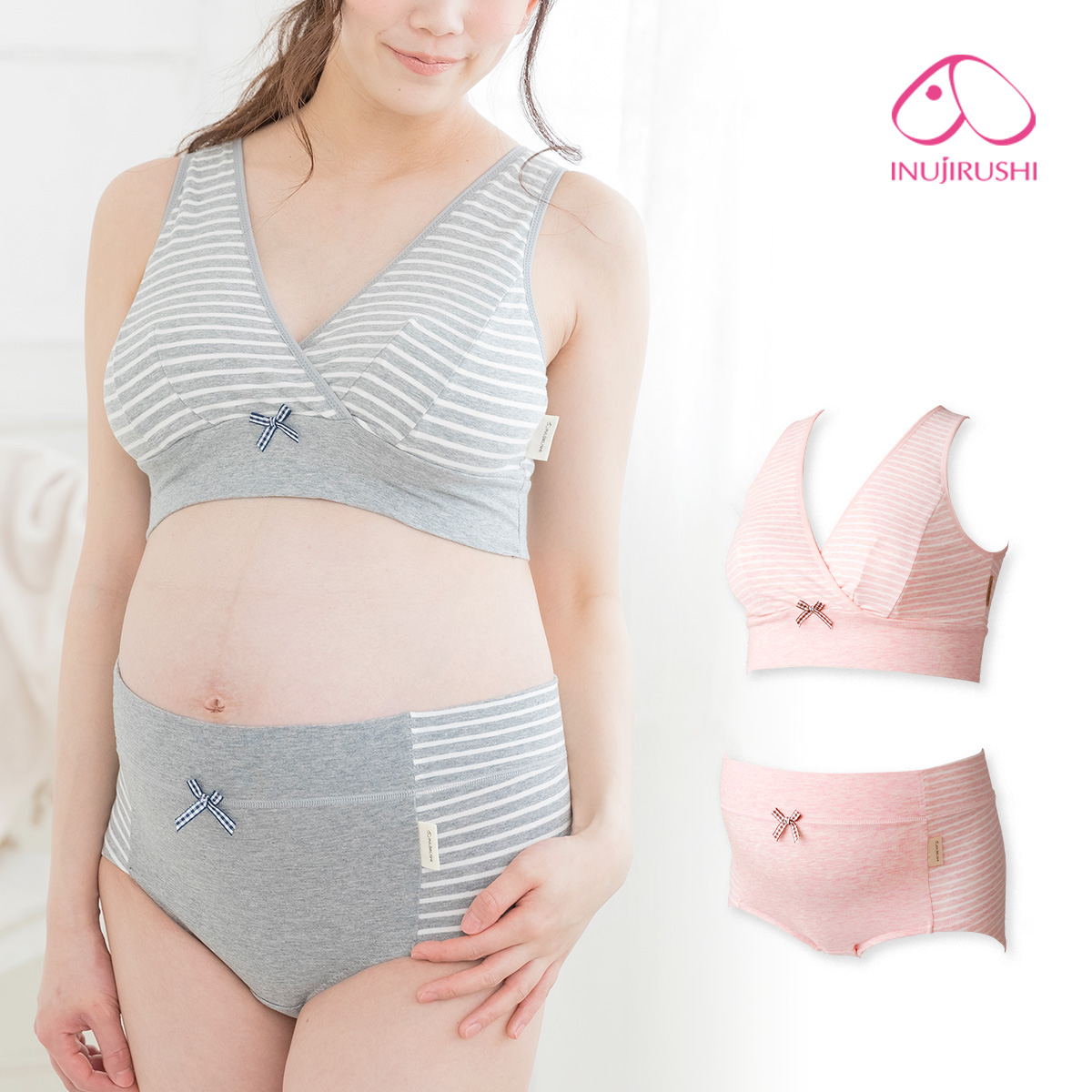 【メール便送料無料】セット買いがお得!! 犬印マタニティ 犬印本舗 【BR1624-SH2466 ブラショーツセット】◇授乳ブラ 上下セット 産前産後 ノンワイヤー カシュクール ストラップオープン◇らくちんショーツ ピンク グレー