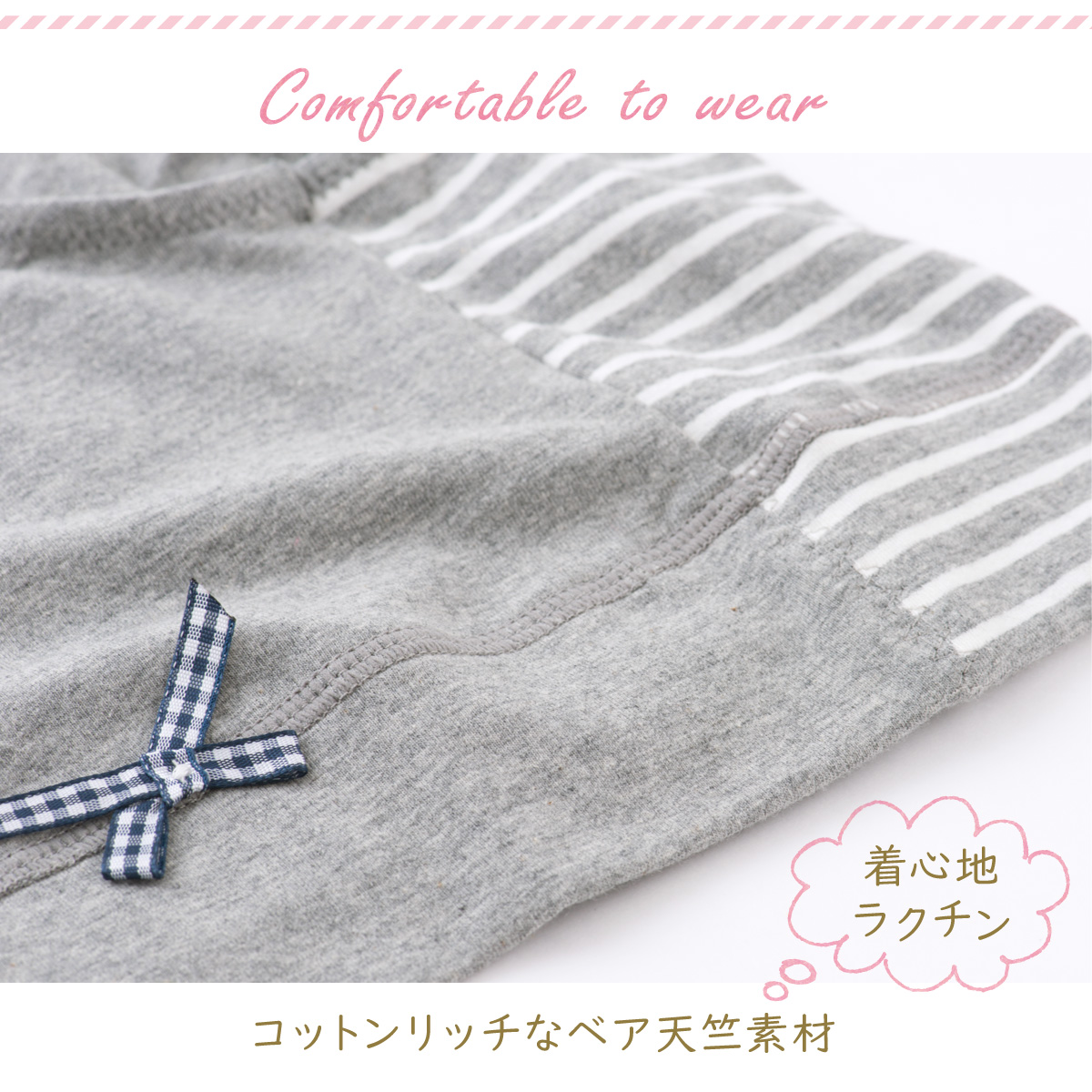 ・肌ざわりが良く、伸びの良いコットンリッチなベア天竺素材。また、産前から産後まで着用いただけます。