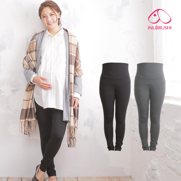 【】マタニティ レギンス 犬印本舗 INUJIRUSHI 産前産後らくちんパンツ10分丈 224-8301 レギンス 妊娠中 産後 伸縮性抜群 綿混 綿95% 通年OK ブラック チャコールグレー M L