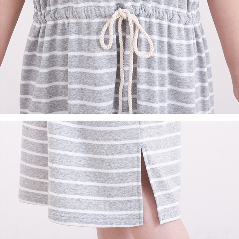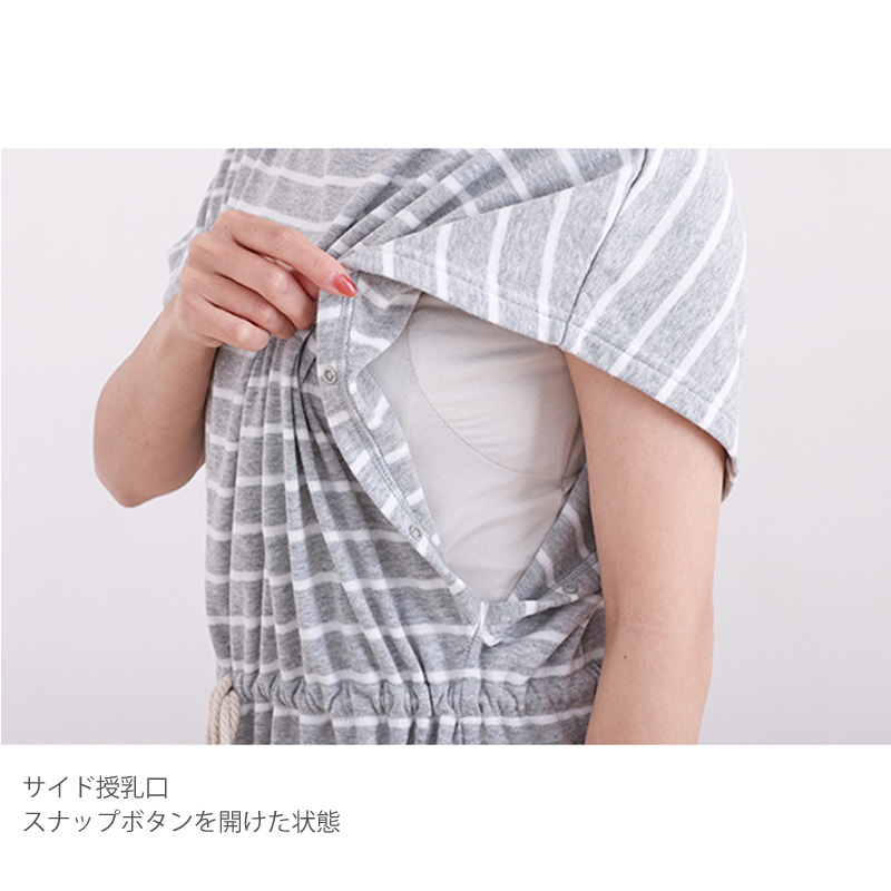 送料無料 マタニティ ワンピース パジャマ ルームウェア 犬印 犬印本舗 妊婦 産前産後 部屋着 レディース 夏 半袖 ひざ丈 授乳 シンプル かわいい おしゃれ お風呂上がり バスローブ ポンチョ M〜L ネイビー グレー グレーボーダー 2328810