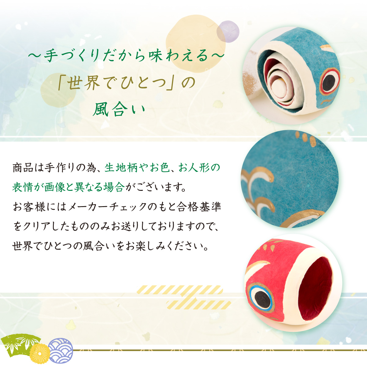 新緑の中、お子さんの健康を祈り、健やかな成長の思いを込めてお飾りください。