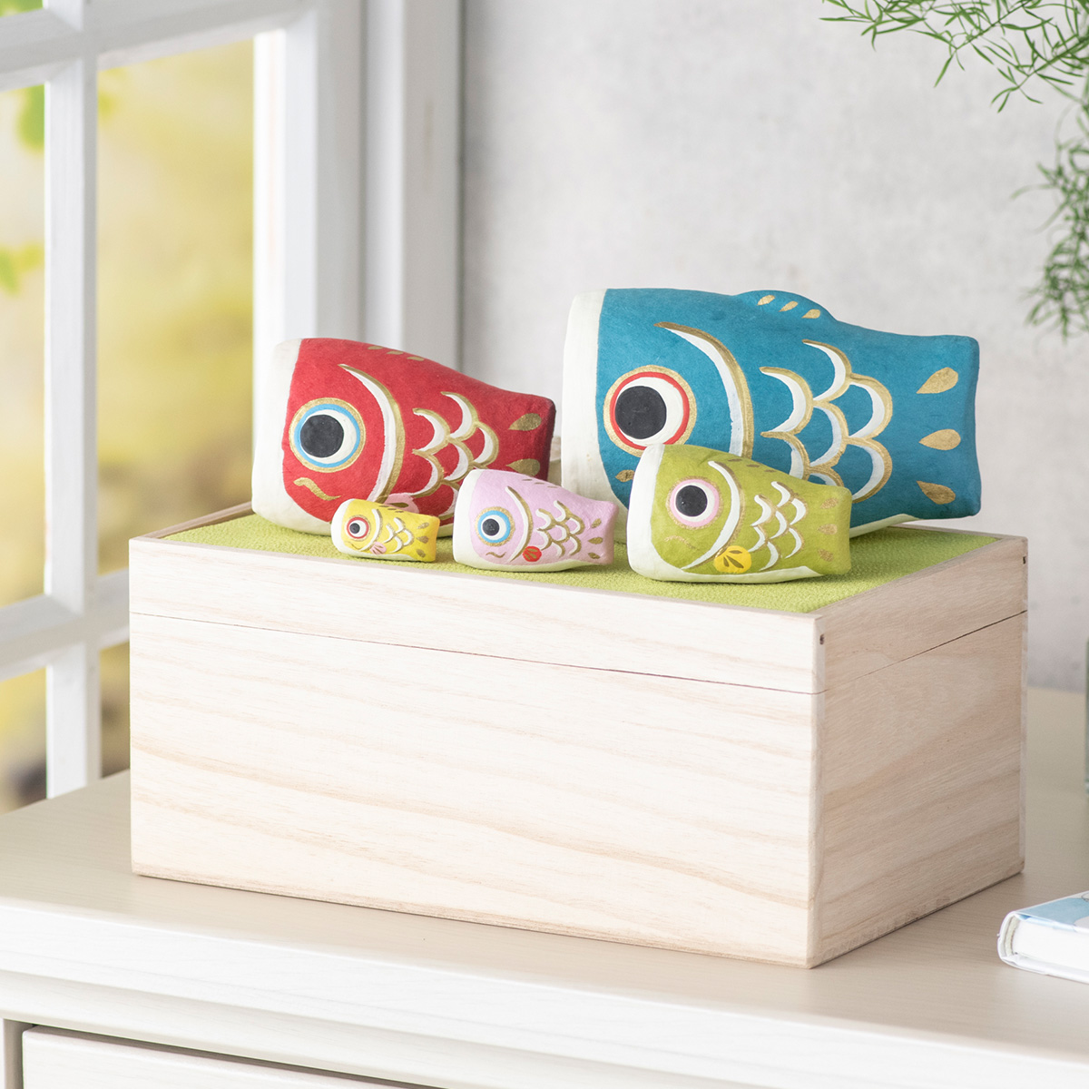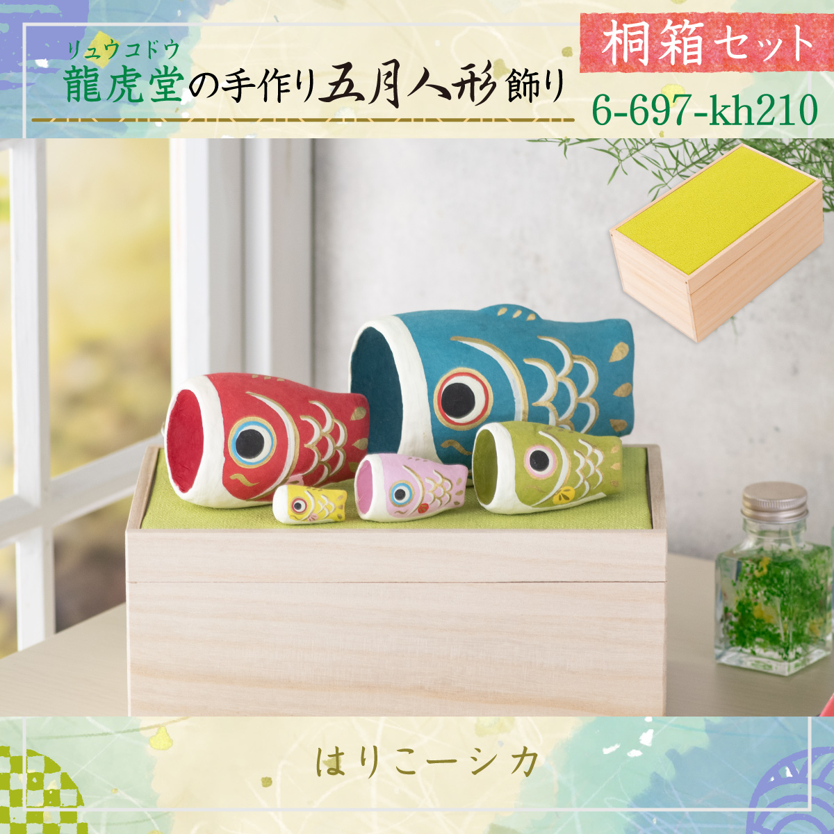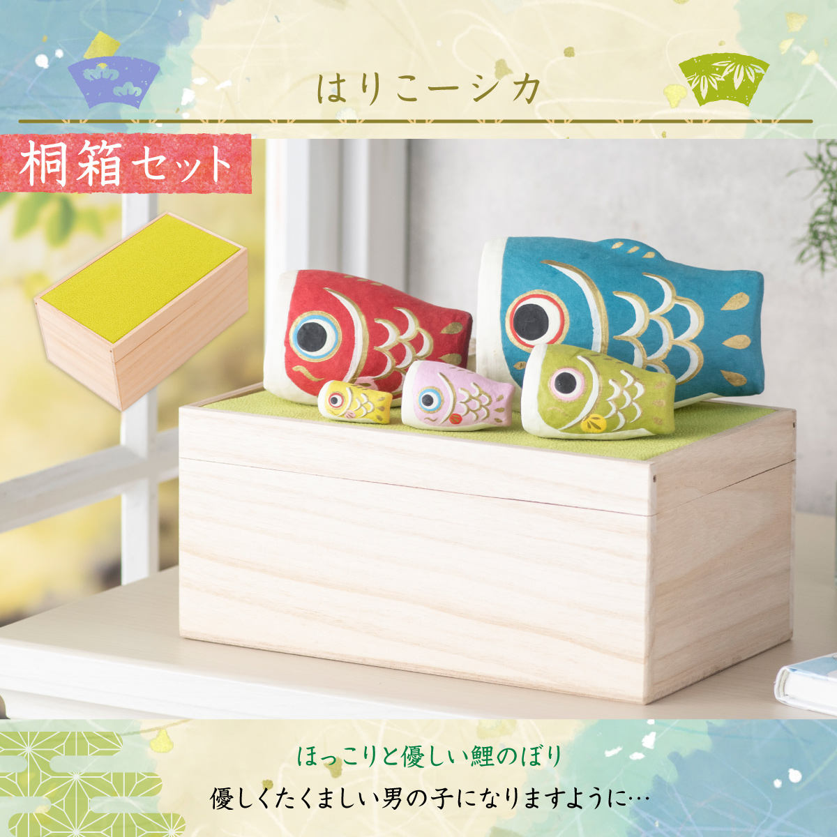五月人形 鯉のぼり 桐箱セット【はりこーシカ】 こいのぼり 兜 コンパクト ちりめん <br> 室内 端午の節句 初節句 <br> 子供の日 マンションサイズ 『龍虎堂』リュウコドウ 五月人形 モダン <br> 【送料無料】※沖縄を除く