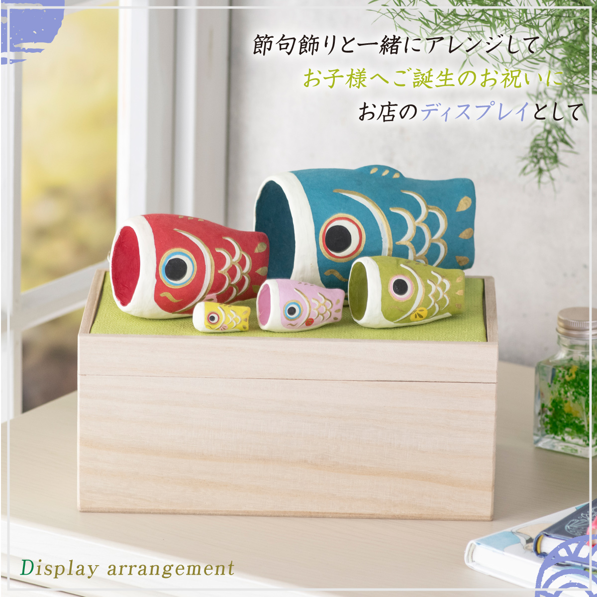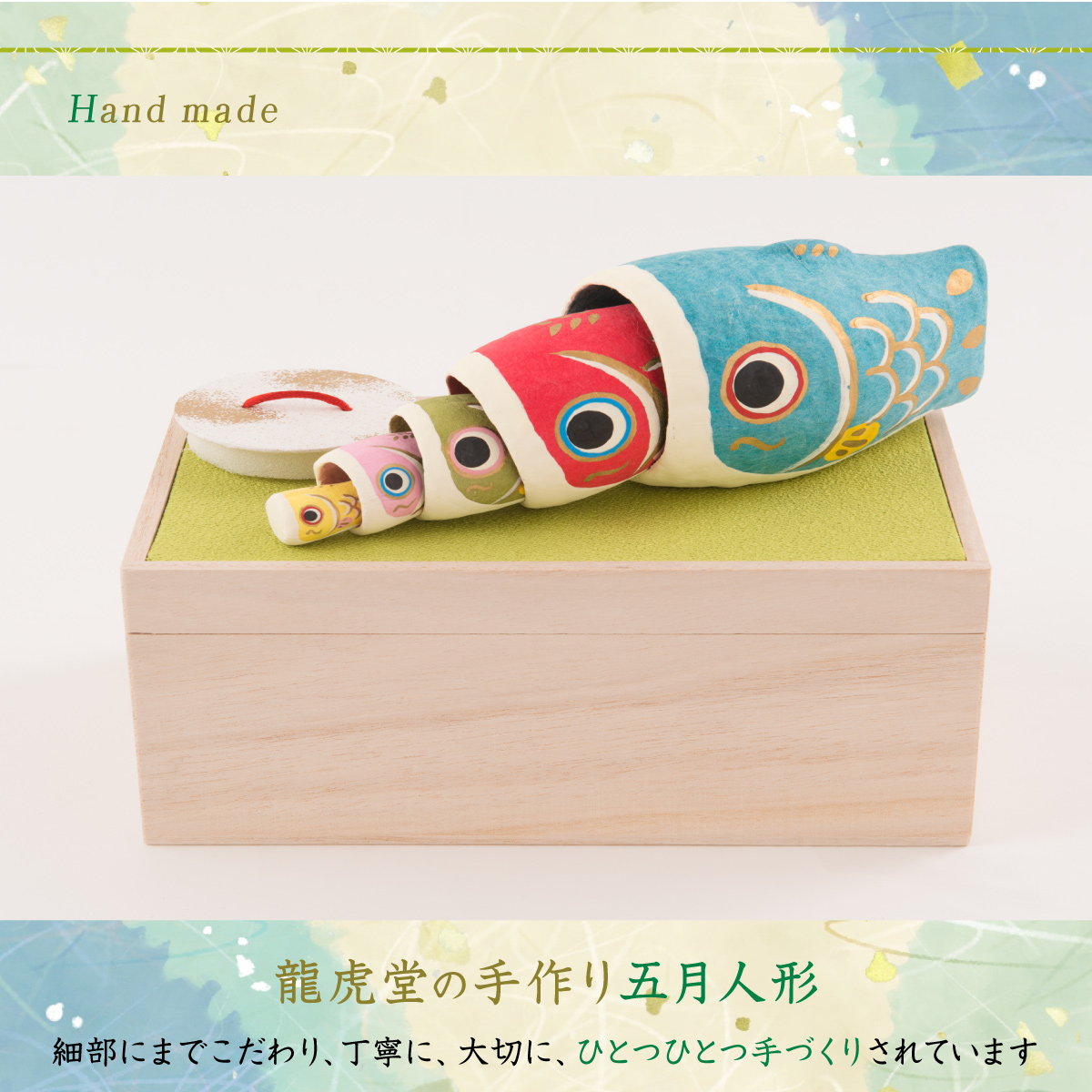 付属:青鯉・赤鯉・緑鯉・ピンク鯉・黄色鯉・桐箱