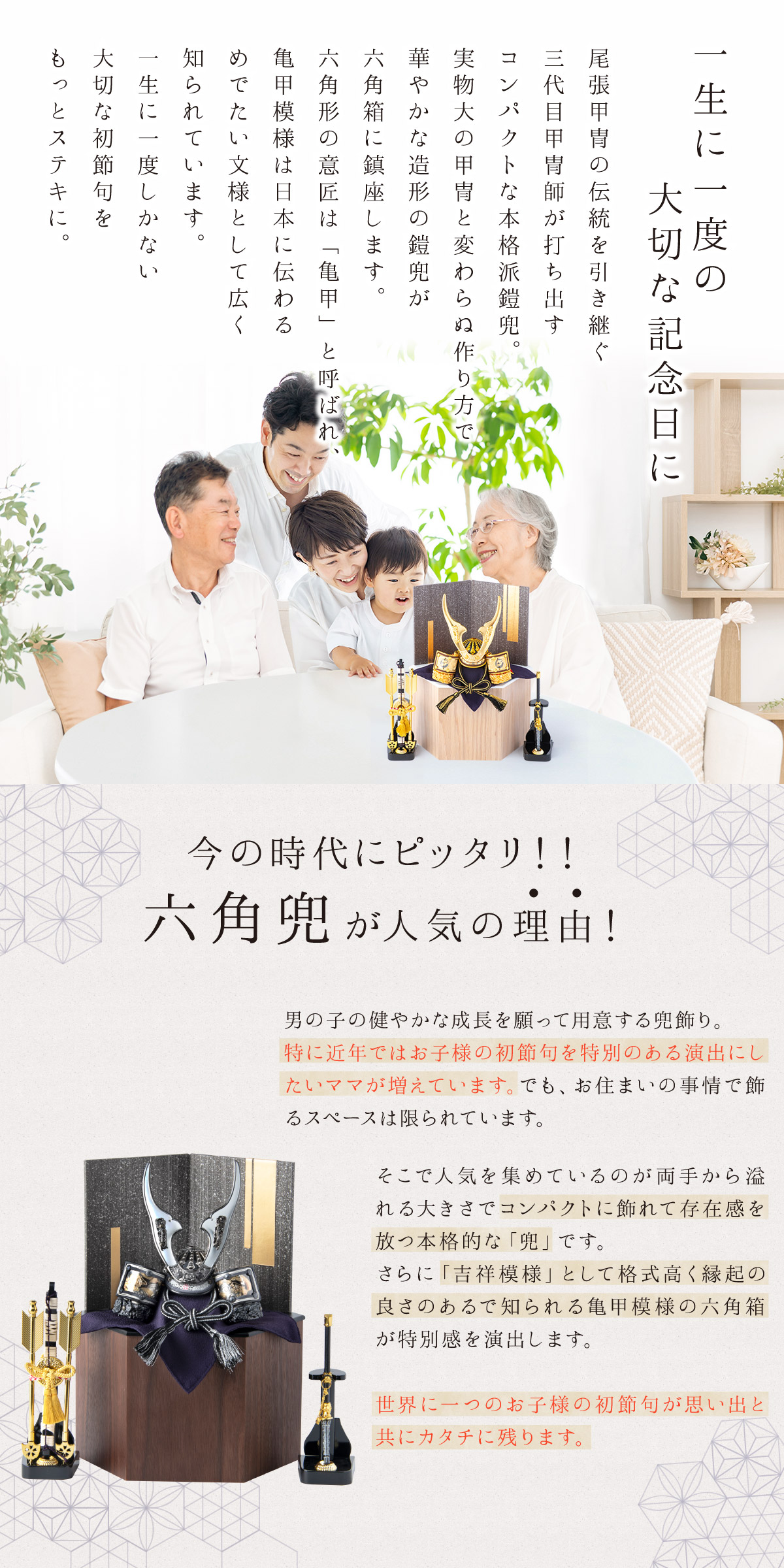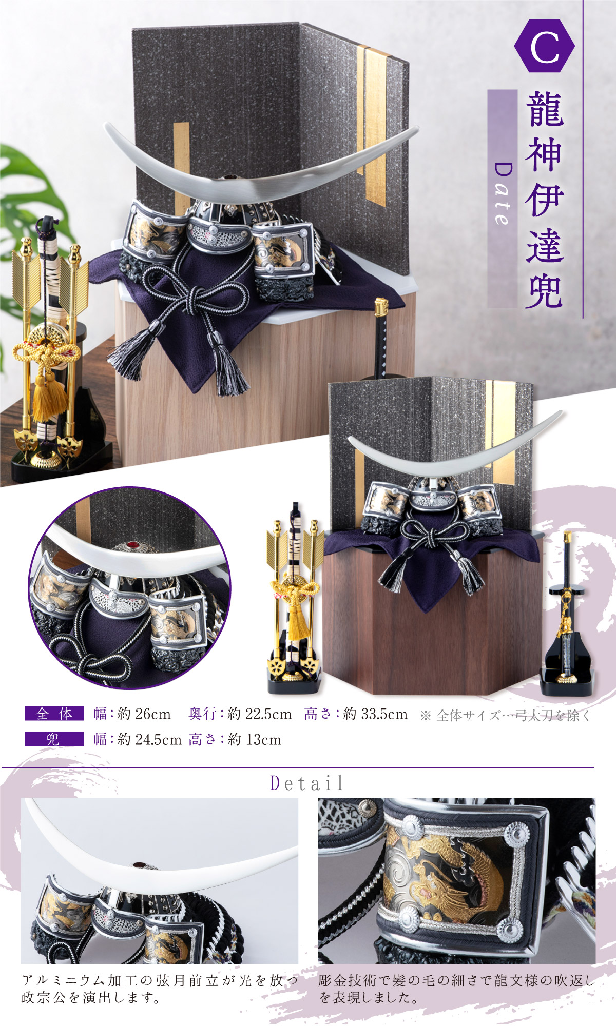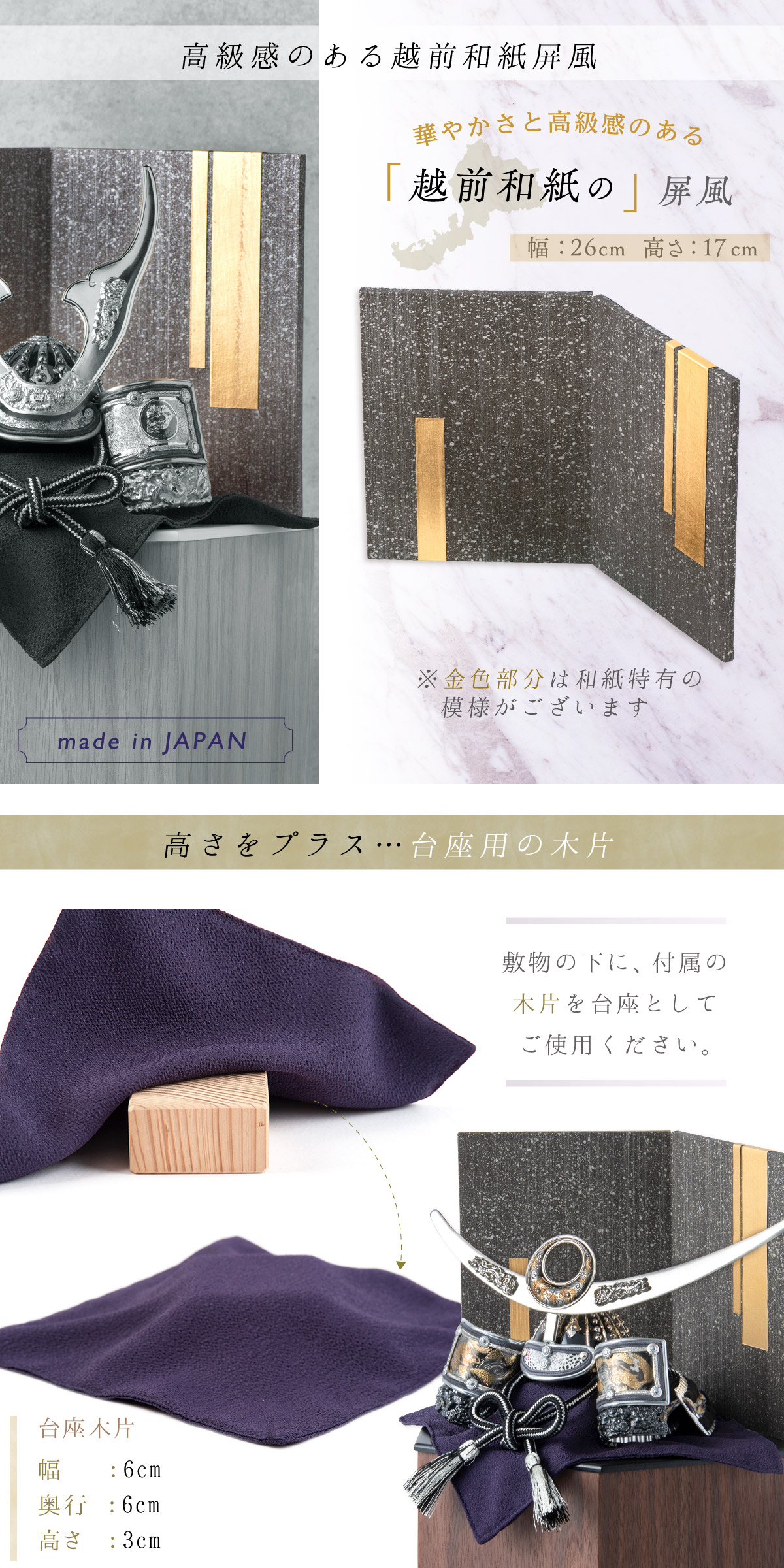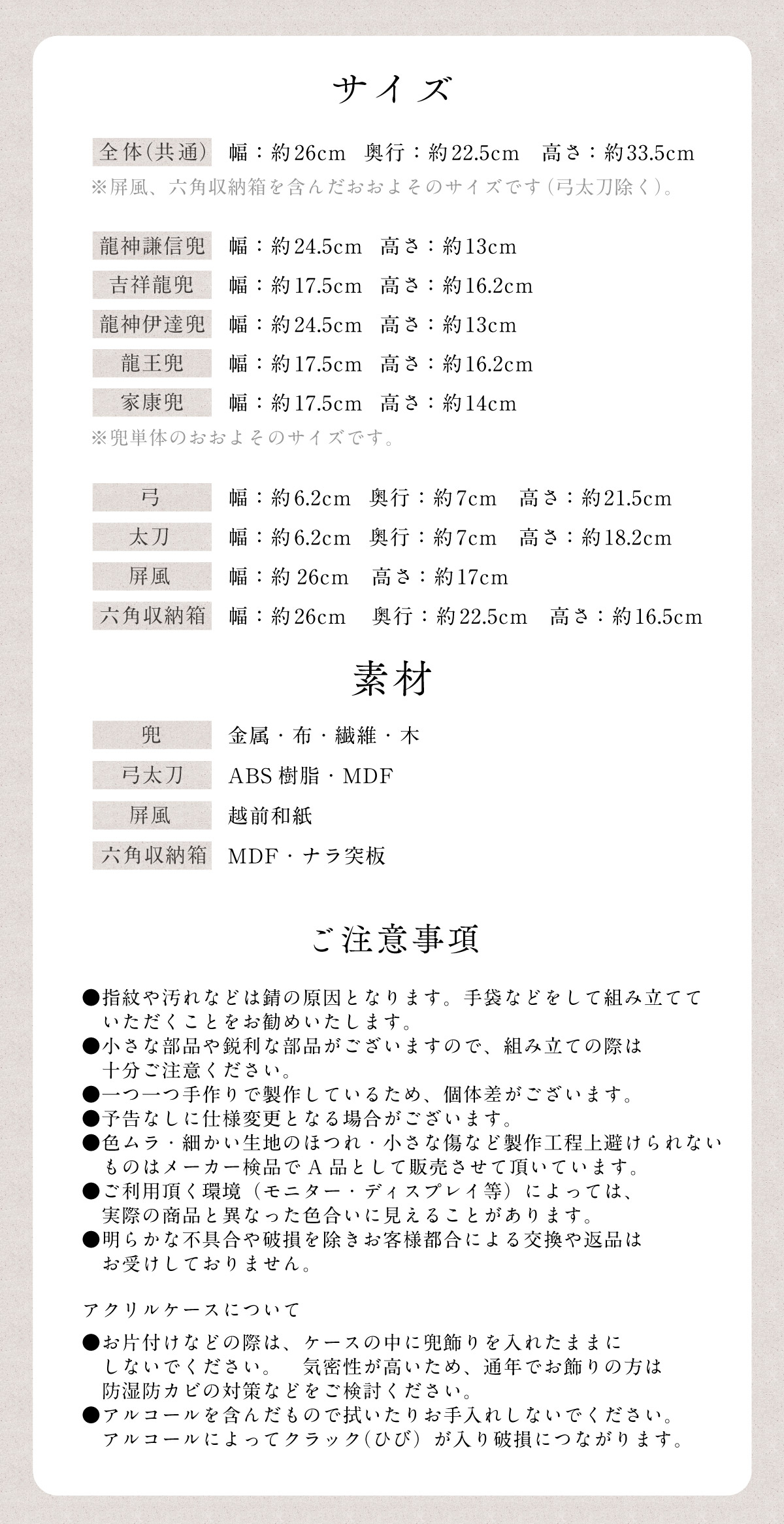 付属:兜・六角収納箱【意匠登録出願済】・屏風・敷物・土台木片・弓太刀