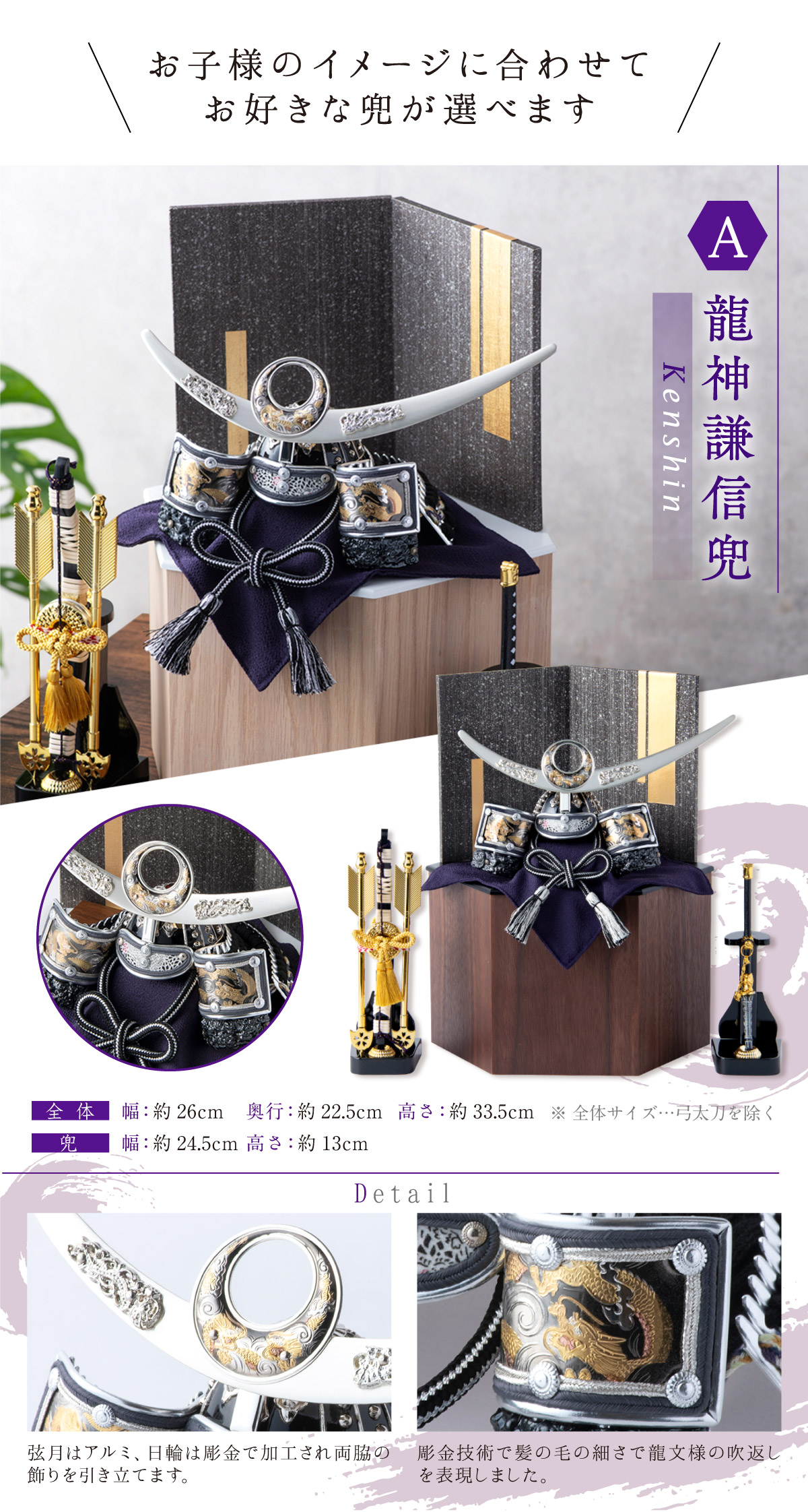 五月人形 コンパクト おしゃれ 高級 モダン 5月人形 兜飾り 選べる五種類 こどもの日 インテリア 男の子 初節句 人気 上杉謙信/吉祥龍/伊達政宗/龍王/徳川家康