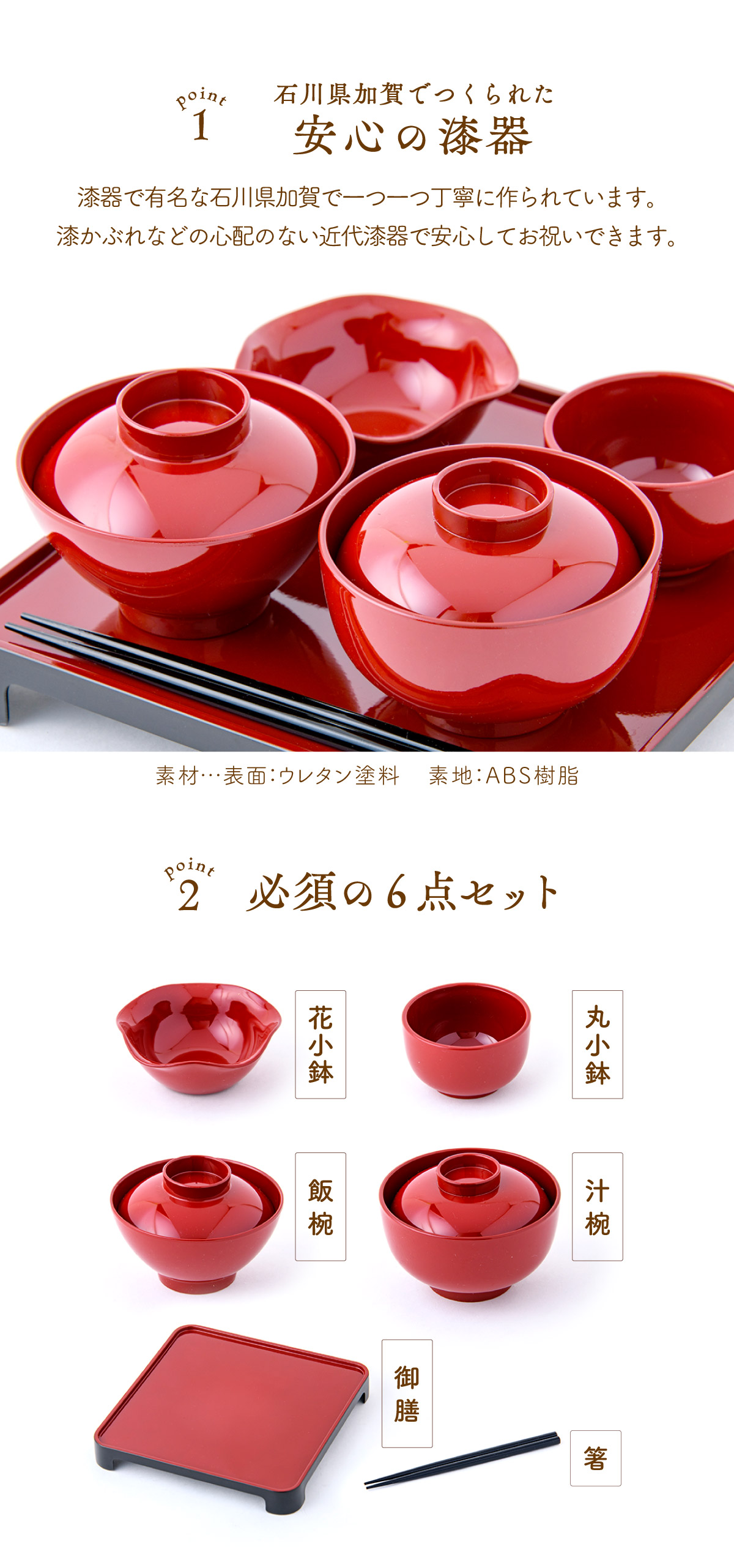 ■セット内容:焼き鯛・焼帆立・昆布巻・梅干し・紅白ナマス・祝い海老・真蛸酢漬け・赤飯・煮物・お吸い物(蛤)・歯固め石・祝い箸