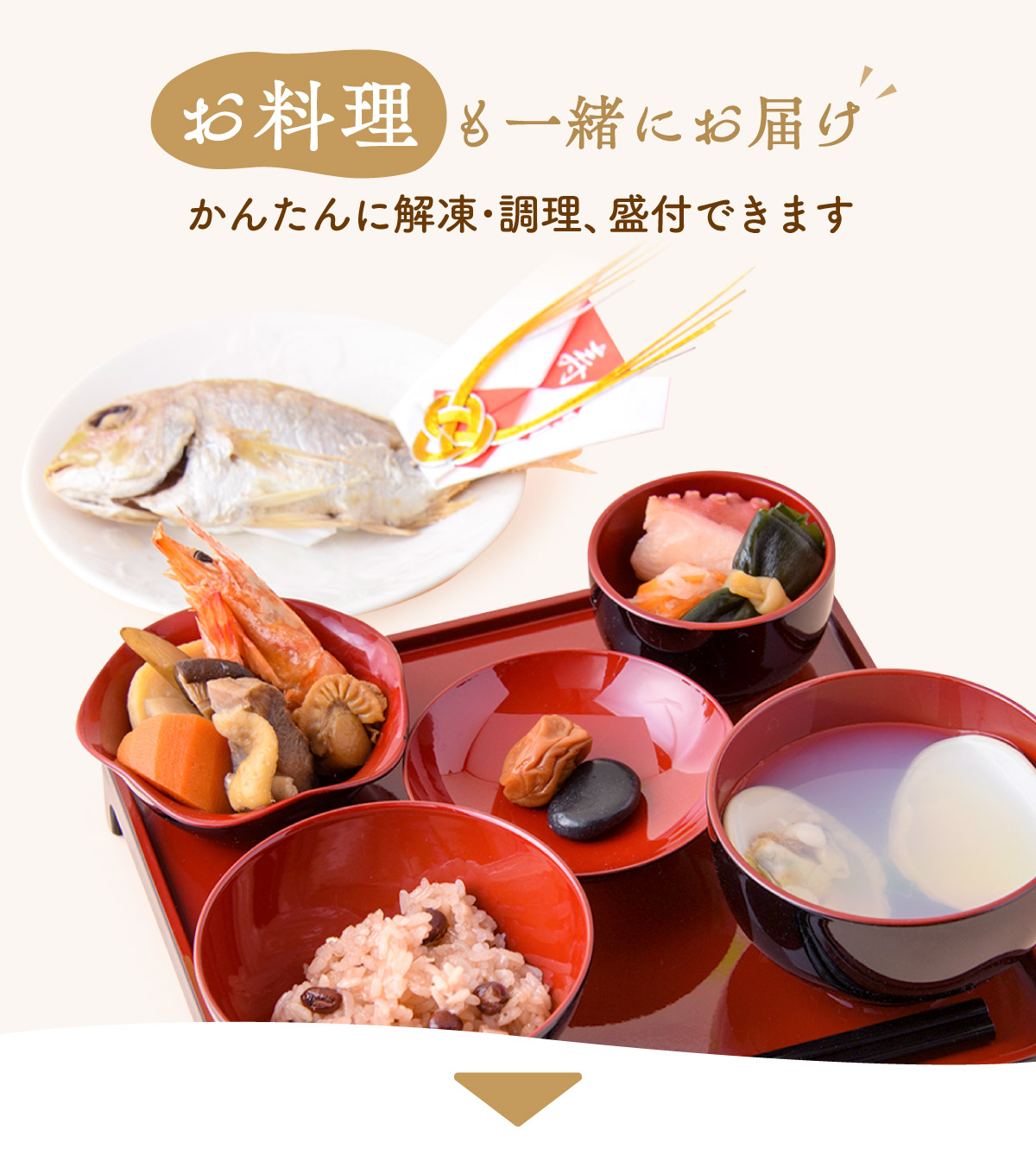お祝い儀式の予定前(24〜30時間前)に冷蔵室に移し解凍してください。