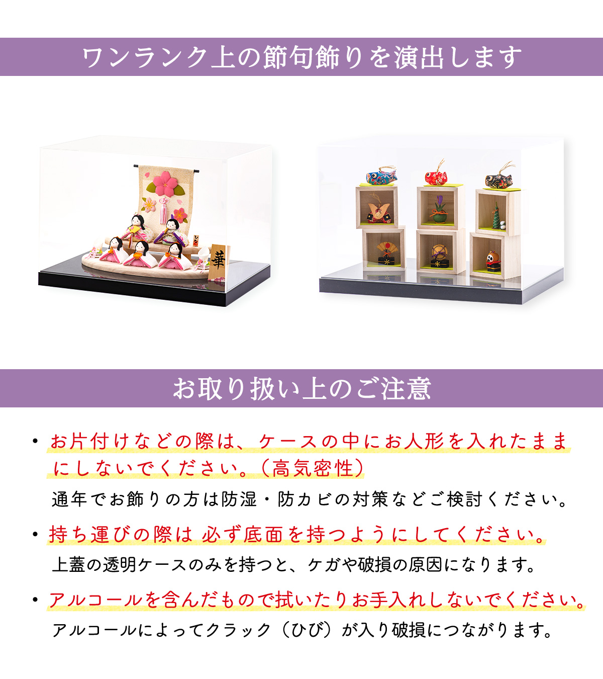 【送料無料】 雛人形 ひな人形 五月人形 兜 収納飾り ケース飾り ちりめん コンパクト ミニ 小さい 人形 飾りアクリルケース GH-1B ケースサイズ幅47*奥行32*高さ32 (送料無料は沖縄・離島を除きます)