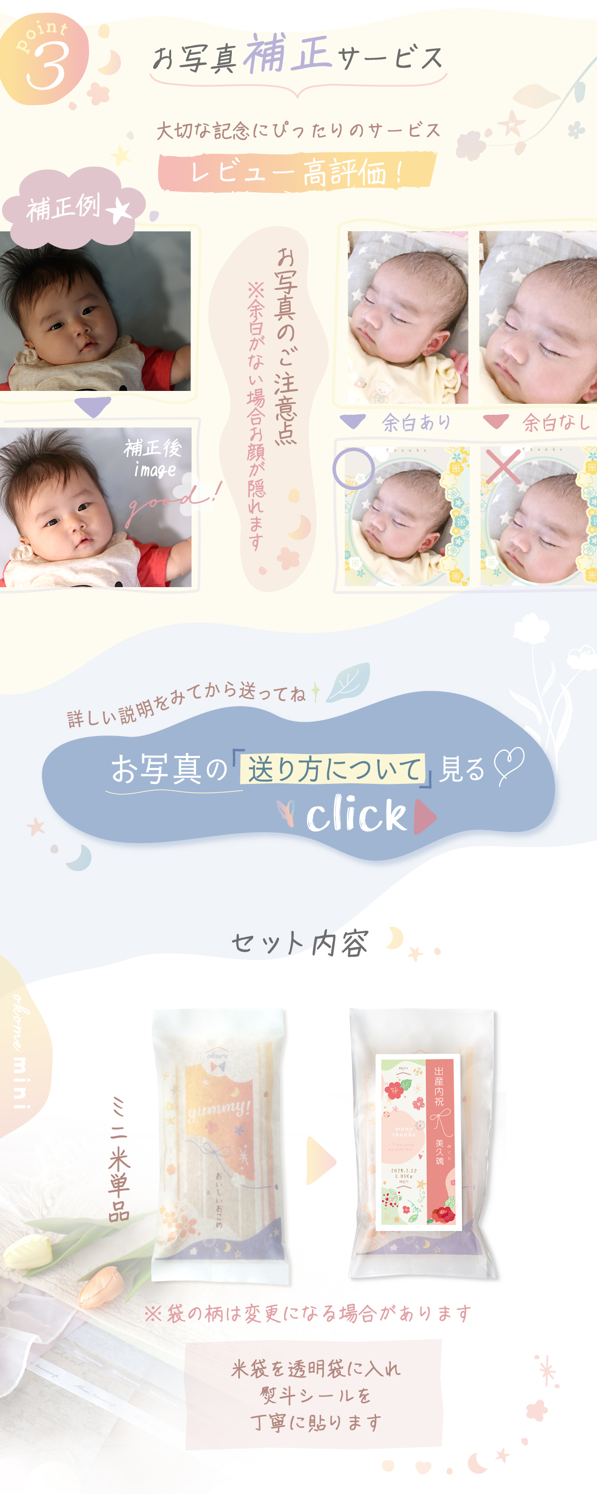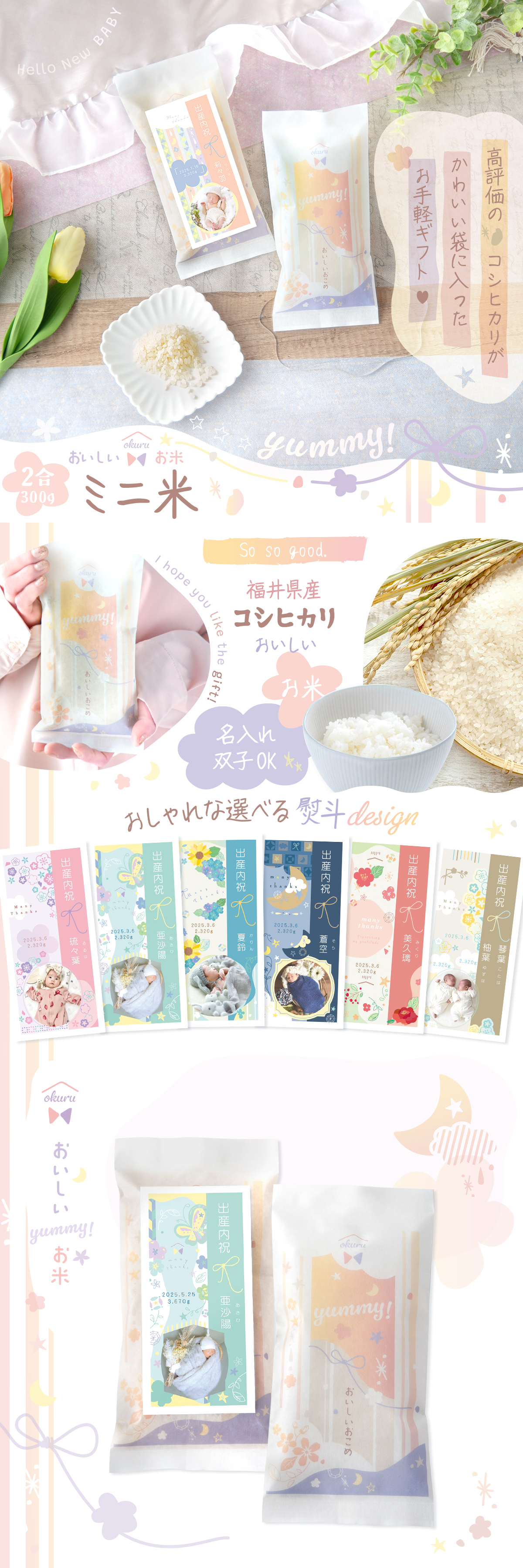 ◆出産内祝い 内祝い ギフト 令和7年度産 ミニ米 お返し 米 お米 コシヒカリ 名入れ 写真入り 写真付 熨斗 おしゃれ かわいい 贈り物 ◆