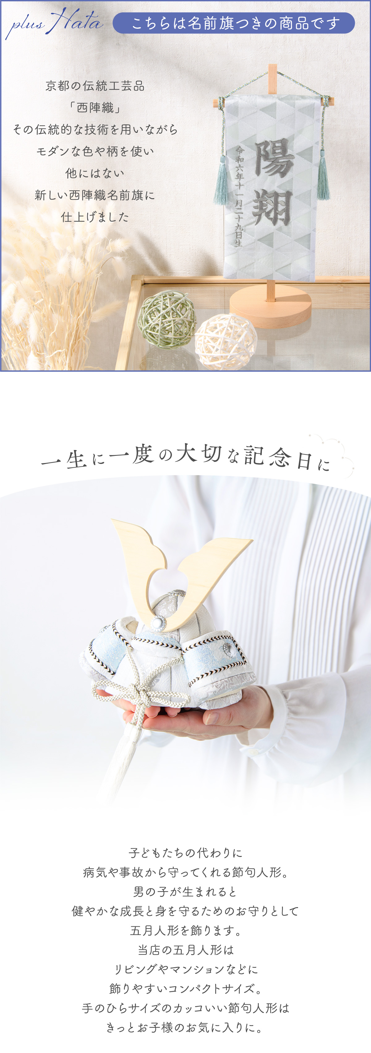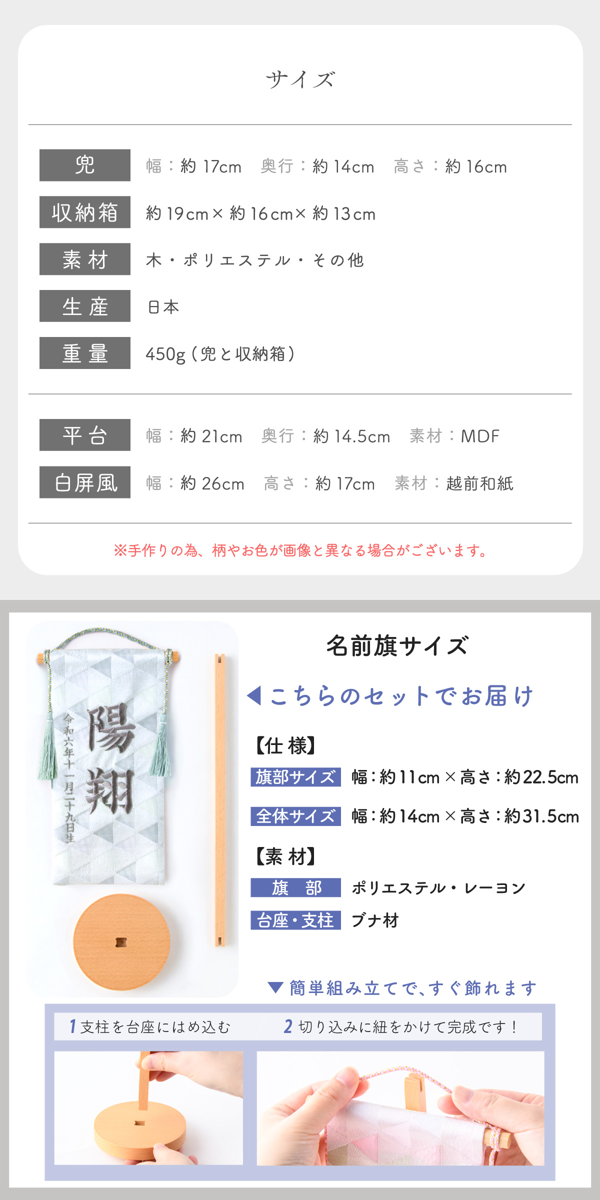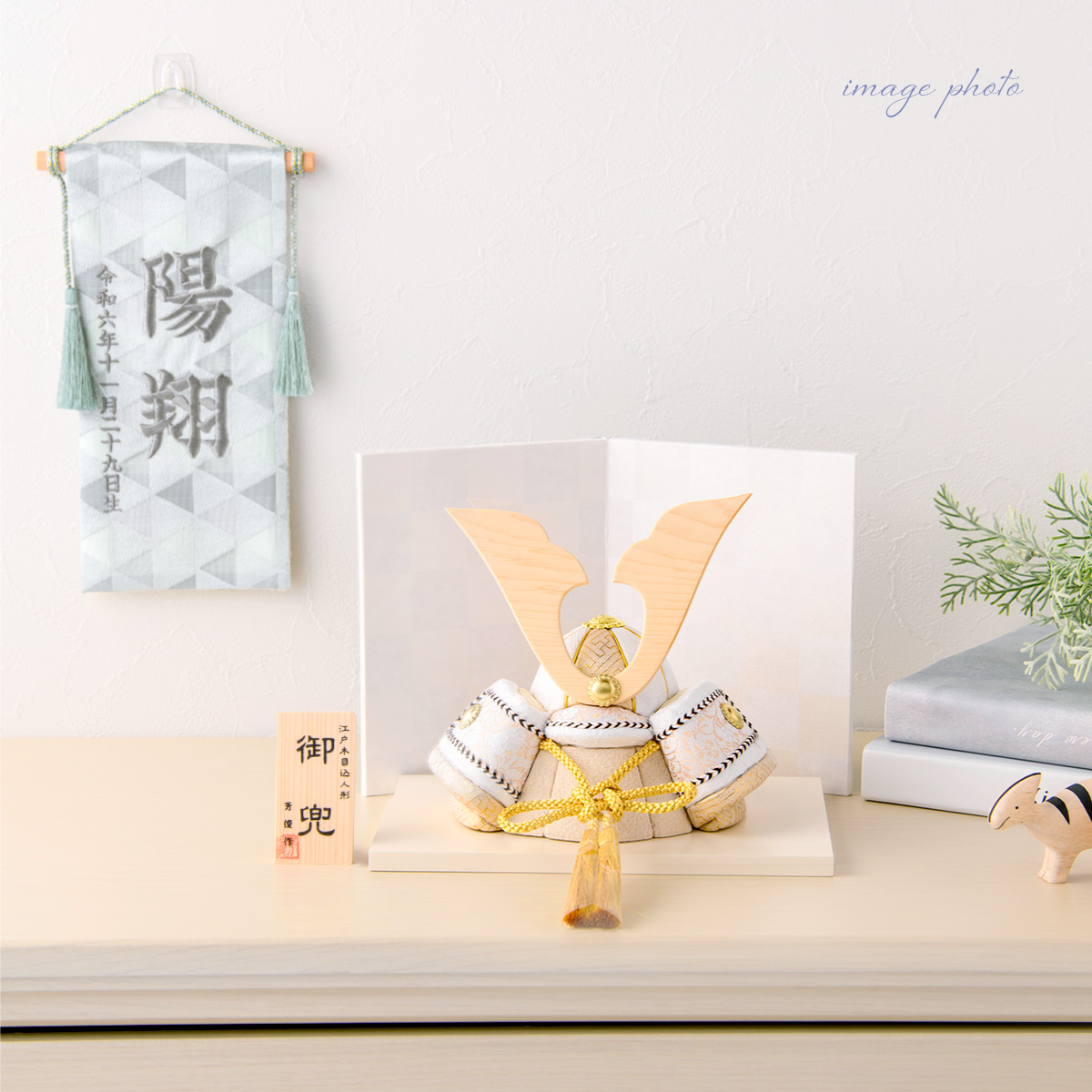 五月人形 コンパクト おしゃれ 木目込み 兜 兜飾り 西陣織 2025年 名前旗セット 木目込五月人形 吉翔兜(大)平台 白屏風 刺繍名前旗 名入れ 名入れ刺繍 かわいい 端午の節句 初節句 子供の日 ミニ