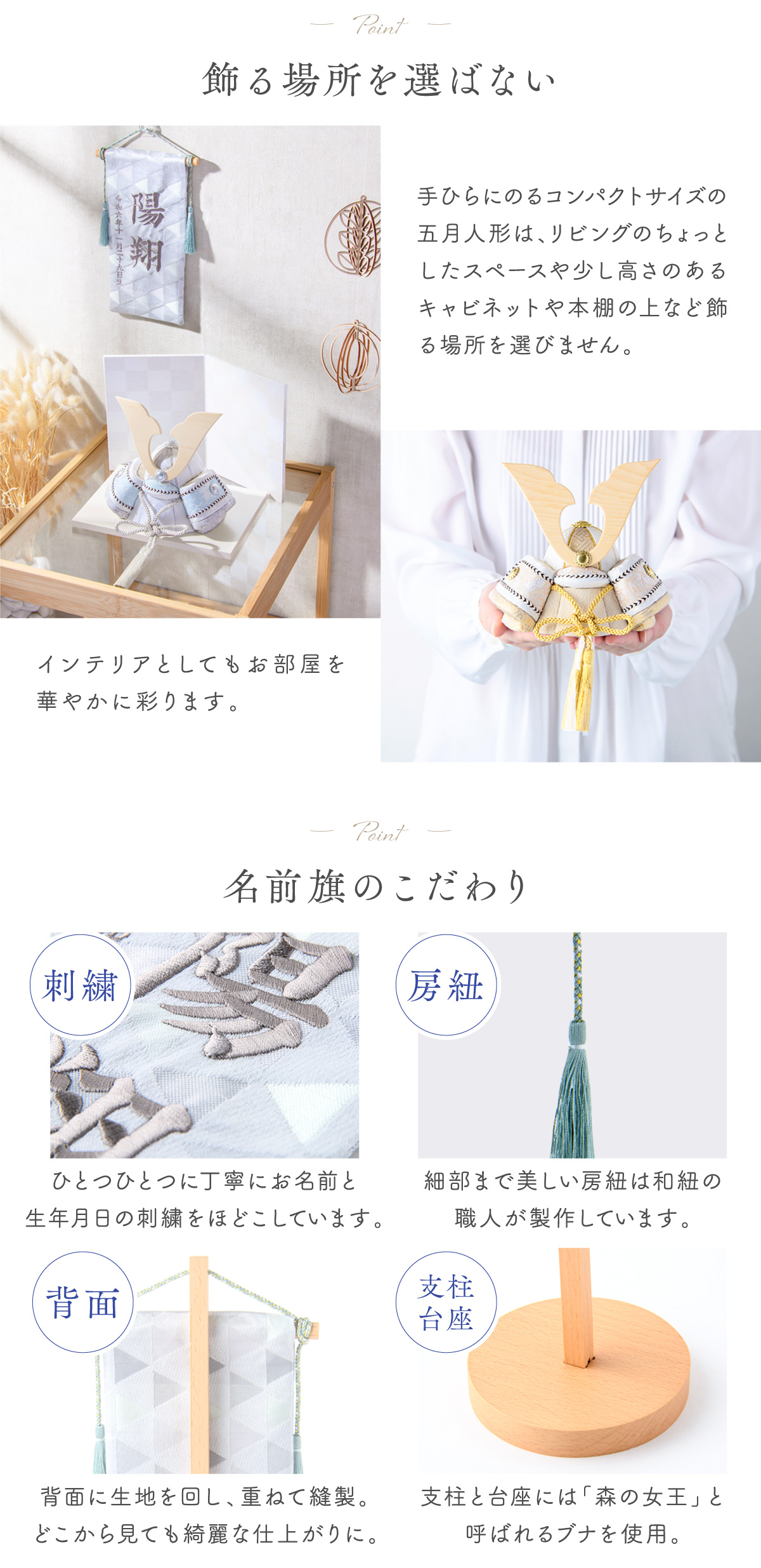 お子さまが大きくなると親子一緒に収納ケースに片づけをし、五月人形を大切にする心も育みます。
