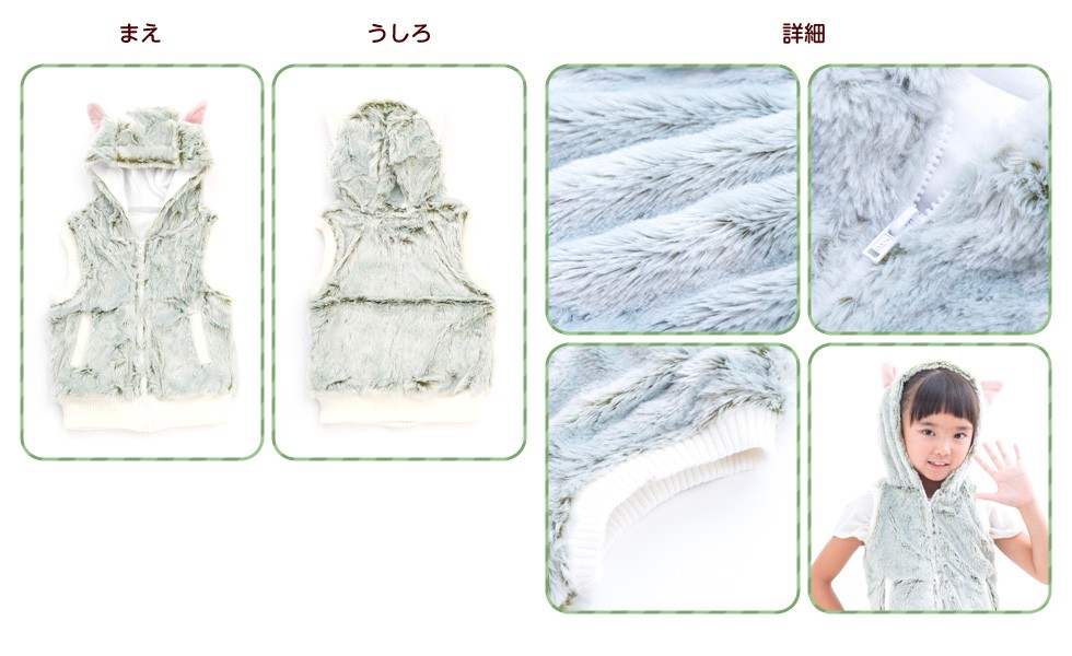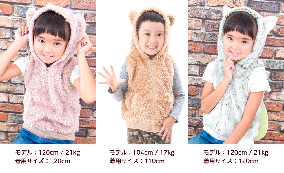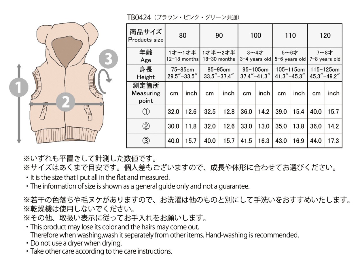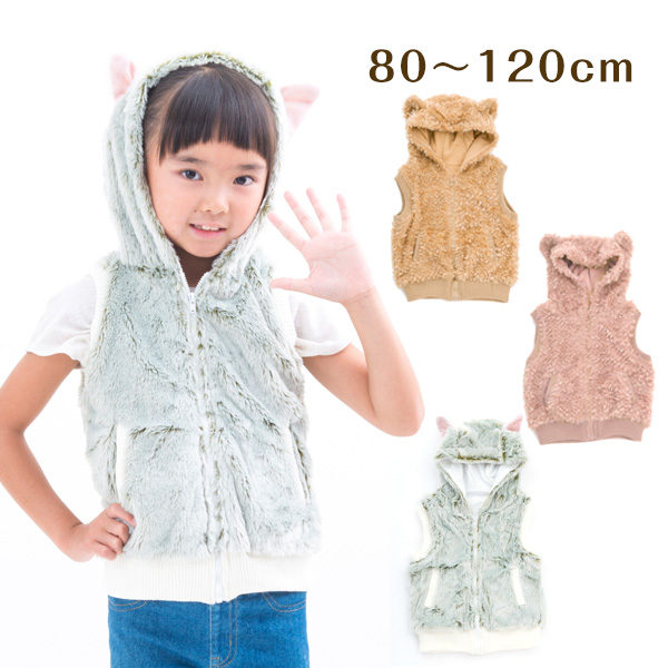 ベビー キッズ 【送料無料】 防寒着 くま ねこ 【もこもこベスト】 ブラウン グレイッシュピンク グリーン 男女共用 サイズ:80cm 90cm 100cm 110cm 120cm 232411 (BR) / 232412 (P) / 232413 (G) (送料無料は沖縄・離島を除きます)