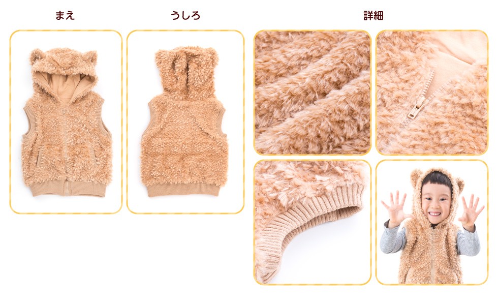 ベビー キッズ 防寒着 くま ねこ 【もこもこベスト】 男女共用