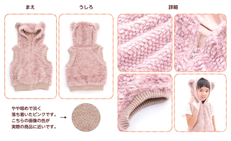 送料無料 ベビー キッズ 防寒着 くま ねこ もこもこベスト ブラウン グレイッシュピンク グリーン 子供 かわいい クリスマス ※北海道・沖縄は送料900円
