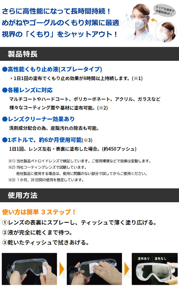 高性能 レンズくもり止め液 ハイパーデミスト2 仕様