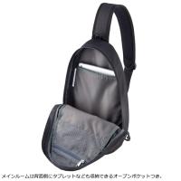 | ティアドロップ形状 フロントポケット ジッパー付きインナーメッシュポケット 右掛け、左掛け変更可能ショルダーストラップ パッド入りスリーブ |