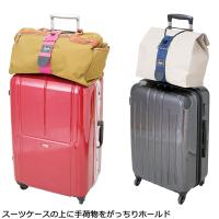 スーツケースの上にビジネスバッグや手荷物を乗せてバッグが落ちないように固定する万能ベルト。