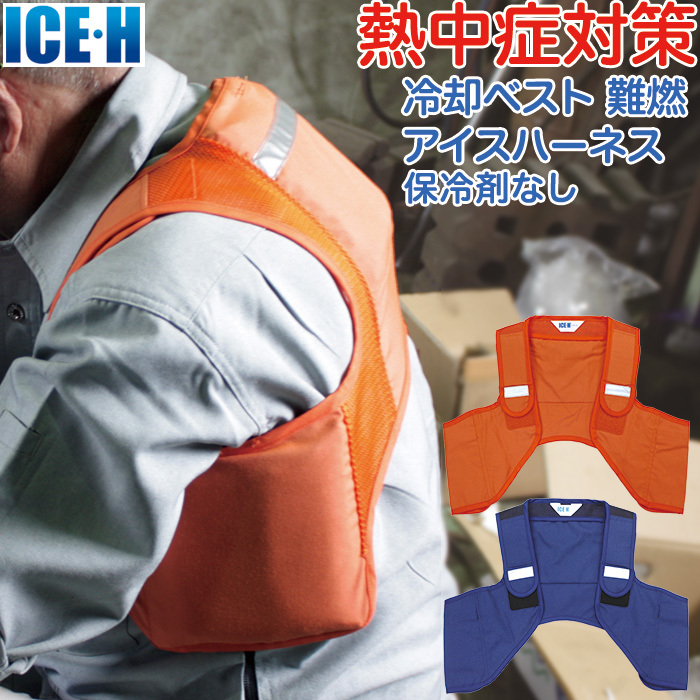 この「難燃アイスハーネス」は、本体素材に難燃性アラミド生地を採用。鉄工所や消火活動など耐熱・難燃性能が求められる現場での着用に適した冷却装備品です。爆発の危険性を考慮し電池を使えない作業現場にもお勧めです。