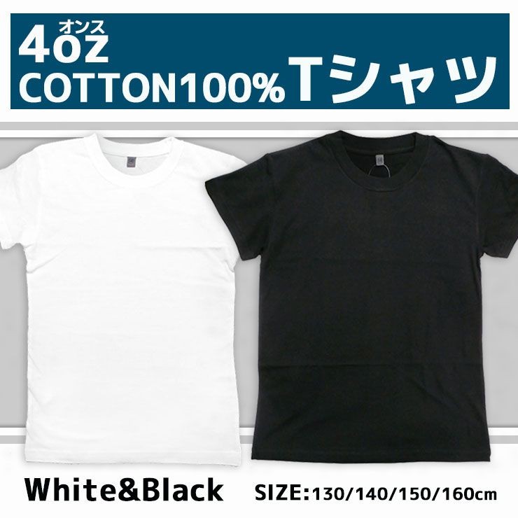 34-070 子供 無地 半袖 Tシャツ 白/黒 130-160cm ☆メール便2点まで配送可 運動会/キッズ/ホワイト/ブラック/ジュニア/綿/sh