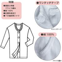 (メール便対応個数・・2点まで) 婦人 7分袖 ワンタッチ 肌着 マジックテープ仕様 22-357sh 介護肌着 入院 前開き レディース シャツ 七分袖 長袖