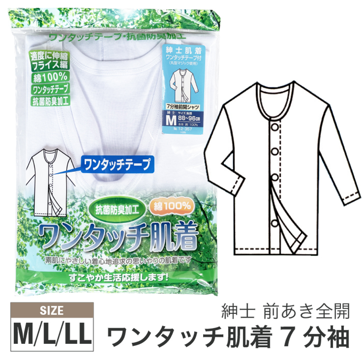 (メール便対応個数・・2点まで) 12-357 紳士 7分袖 ワンタッチ肌着 マジックテープ仕様 sh/介護/入院/前開き/メンズ/シャツ/七分袖