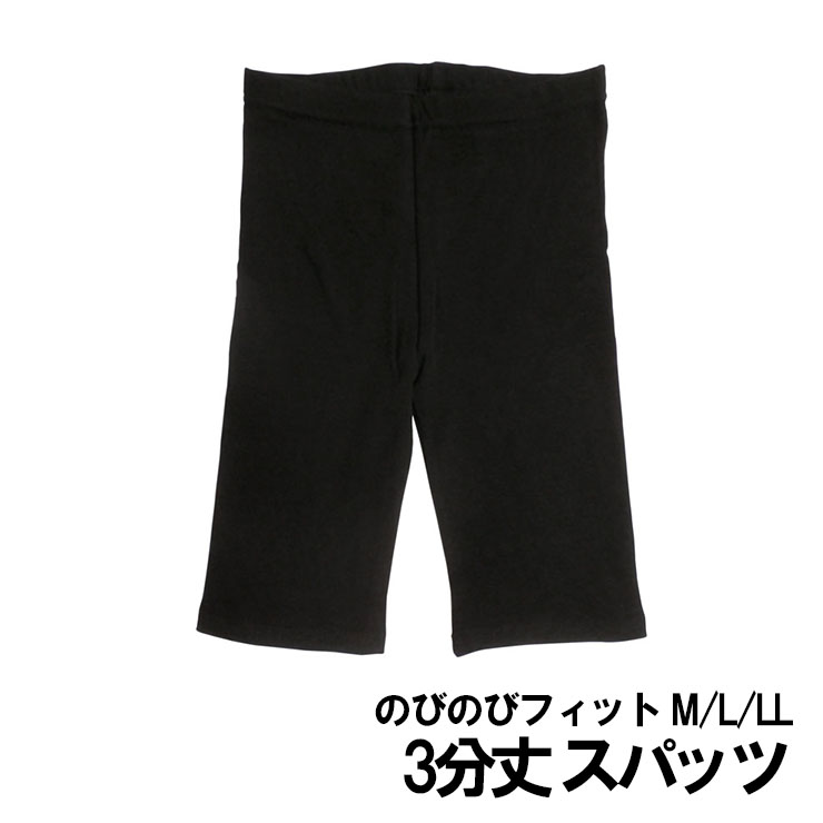 (メール便対応個数・・3点まで) 7003 綿混 レディース 3分丈 スパッツ 黒 ふともも丈 to インナー レギンス ブラック M/L/LL