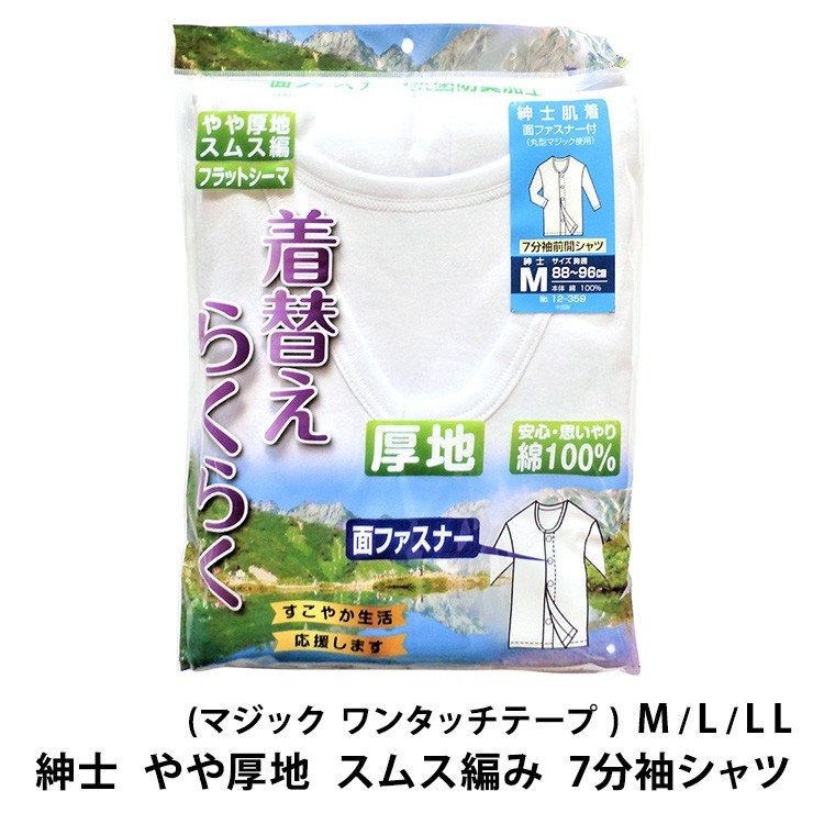 少し厚地 紳士 入院 介護 7分袖 肌着 ワンタッチ (送料込み) sh12-359 マジックテープ 前開き メンズ シャツ 七分袖