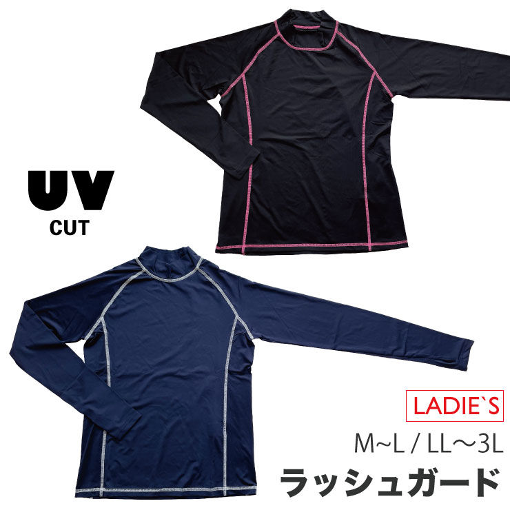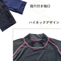(メール便対応個数・・1点) レディース ラッシュガード 長袖 黒・紺 無地 スイムウェア かぶりタイプ タートルネック UVカット ジョギング