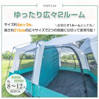 ファミリーテント uv キャンプテント 防水 サンシェード ロッジ ファミリー アウトドアテント フルクローズ トンネルテント 防災テント アウトドア用品 キャンプセット 災害 ロッジテント キャノピー 防災 スクリーンテント メッシュパネル 防虫 リビング 寝室 4m 3m 初心者 家族 友人 仕切り キャノピー ひさし 紫外線 休憩 通気性 インナー ベンチレーション タッセル グランドシート ランタンフック ポケット キャリーバッグ 2ルーム 部屋 スクリーン アウトドア レジャー フライシート付き 携帯 グッズ 海 イベント 避難 バーベキュー 運動会 春 夏 秋 GW BBQ 敬老の日 父の日 母の日 クリスマス プレゼント ギフト