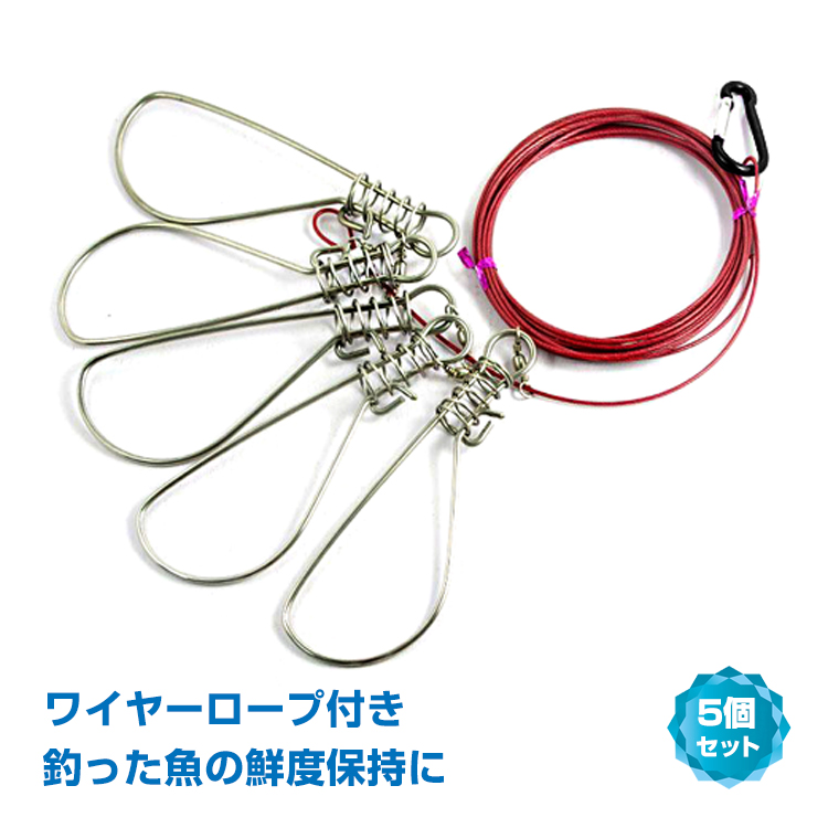 ストリンガー 5個セット ワイヤー ロープ付 鮮度保持 フィッシングツール フィッシュグリップ フック型 レジャー 釣り具 ad139