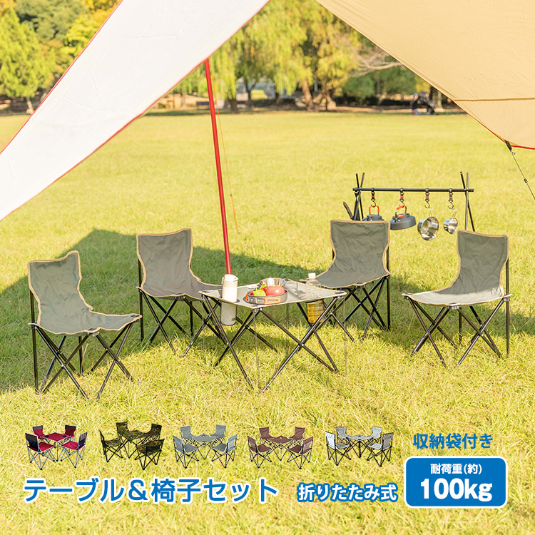 アウトドア チェア テーブル 5点セット 折りたたみ式 テーブル イス 椅子 軽量 アウトドアチェア レジャーテーブル チェアセット 庭 BBQ キャンプ 釣り ad172