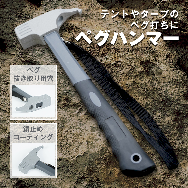 ペグハンマー ペグ抜き ペグ打ち テント タープテント 金槌 キャンプ用品 アウトドア イベント トンカチ ペグ ハンマー ペグ抜き アウトドア テント設営 ad194