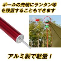 テントポール 2.8m 280cm 単品 シルバー レッド タープ キャノピー 長さ調整 ポール 支柱 テント アウトドア キャンプ ランタンフック アルミ製 ad242