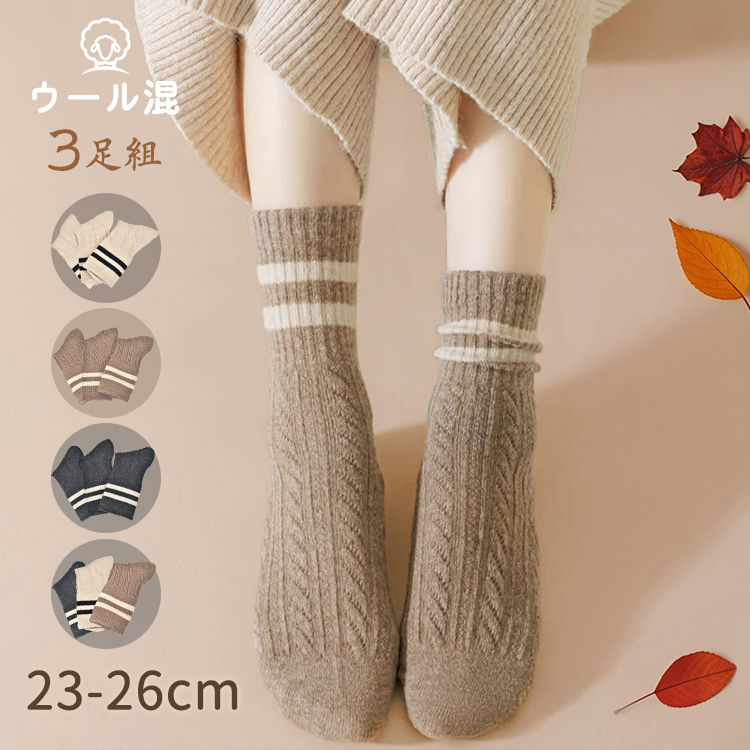靴下3色組 3足セット 23-26cm ウール 毛混 ナイロン 秋 冬 暖かい 防寒 冷え対策 保温 靴下 ソックス ルームソックス シンプル かわいい レディース おばあちゃん メンズ 冷えとり靴下 足の冷えない靴下 冷えとり 冷え性改善 福袋 2025 新生活 敬老の日 父の日 母の日 プレゼント ギフト クリスマス