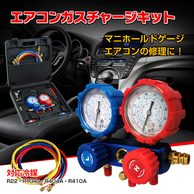 エアコンガスチャージ マニホールドゲージ エアコン ガスチャージ ゲージマニホールド エアコンガスチャージセット r404a r22 エアコン用マニホールド 車 冷媒