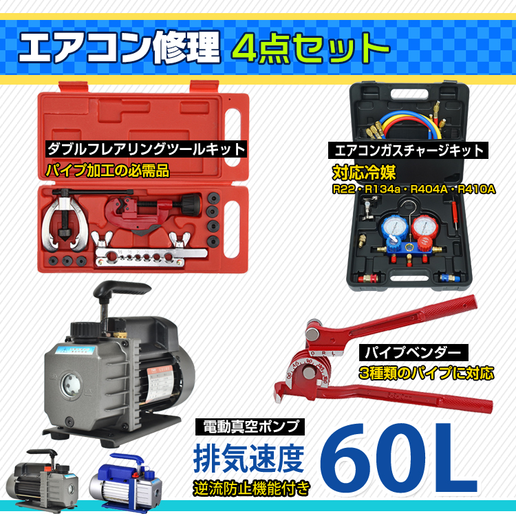真空ポンプ エアコンガスチャージ マニホールドゲージ セット パイプベンダー エアコン ガス チャージ R22 R134a R404A R410A 冷媒 家庭用 自動車用 工具セット