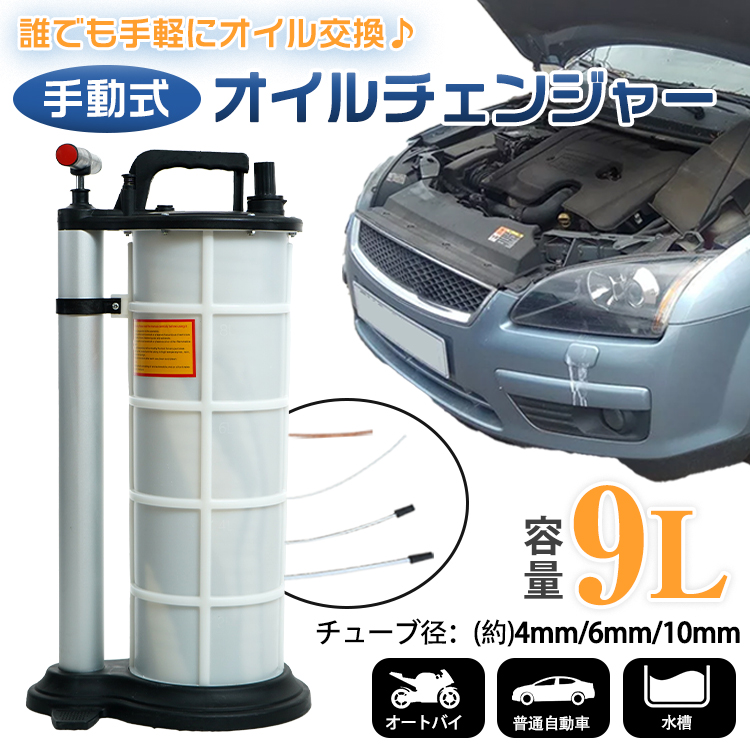 オイルチェンジャー 手動 車 オイル交換 9L エンジンオイル 大容量 ホース6mm 上抜き タンク ポンプ バキューム ブレーキ メンテナンス ジャッキ不要 点検修理