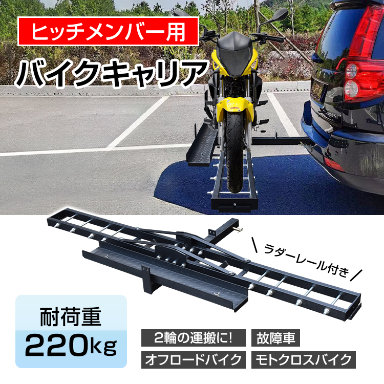 バイク バイク用品 便利グッズ 車 汎用 2インチ 運搬 デリバリー モトクロス スクーター 原付 カブ 50cc 2インチ 運搬用 ヒッチ デリバリー 運ぶ 最大積載 220kg 2輪 装着 ラダーレール 故障車 モトクロスバイク オフロードバイク 輸送 積載 ダートバイク レース 会場 旅行 お出かけ 新車 納入 高速道路 ゴールデンウィーク GW 敬老の日 父の日 母の日 クリスマス プレゼント ギフト