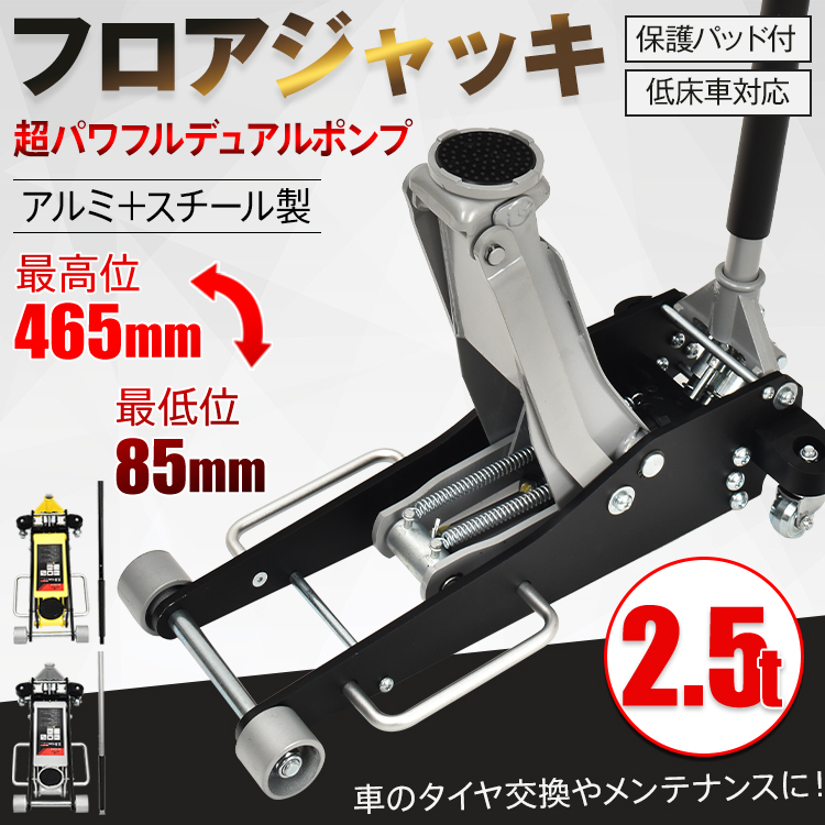 ジャッキ 油圧ジャッキ ガレージジャッキ 2.5t 低床 フロアジャッキ 低床車対応 デュアルポンプ式 ローダウン アルミ スチール 車 タイヤ交換 工具 ee374